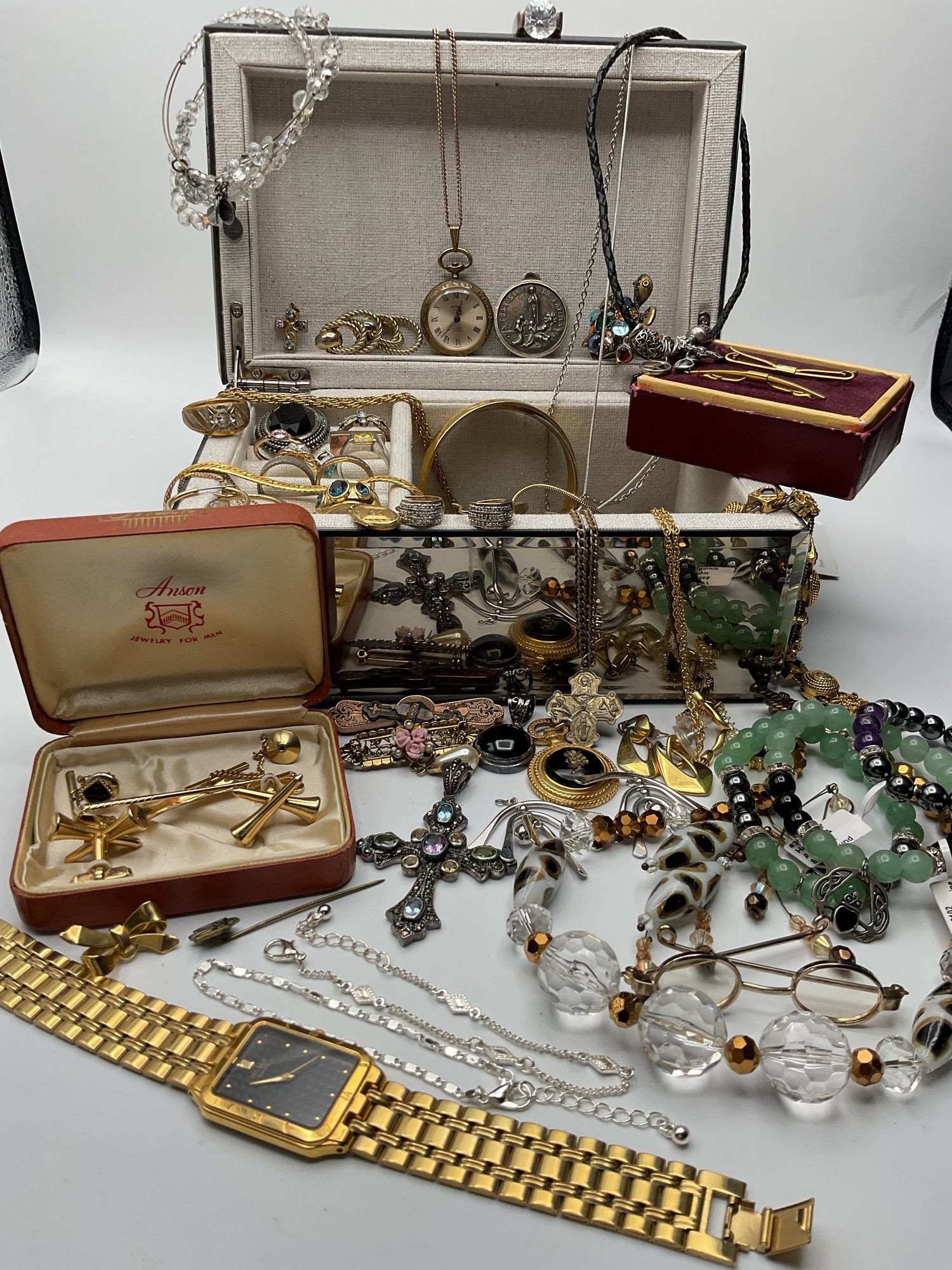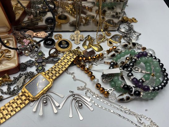 Large Estate Jewelry Collection - Vintage & Modern Mix with Mirrored Jewelry Box