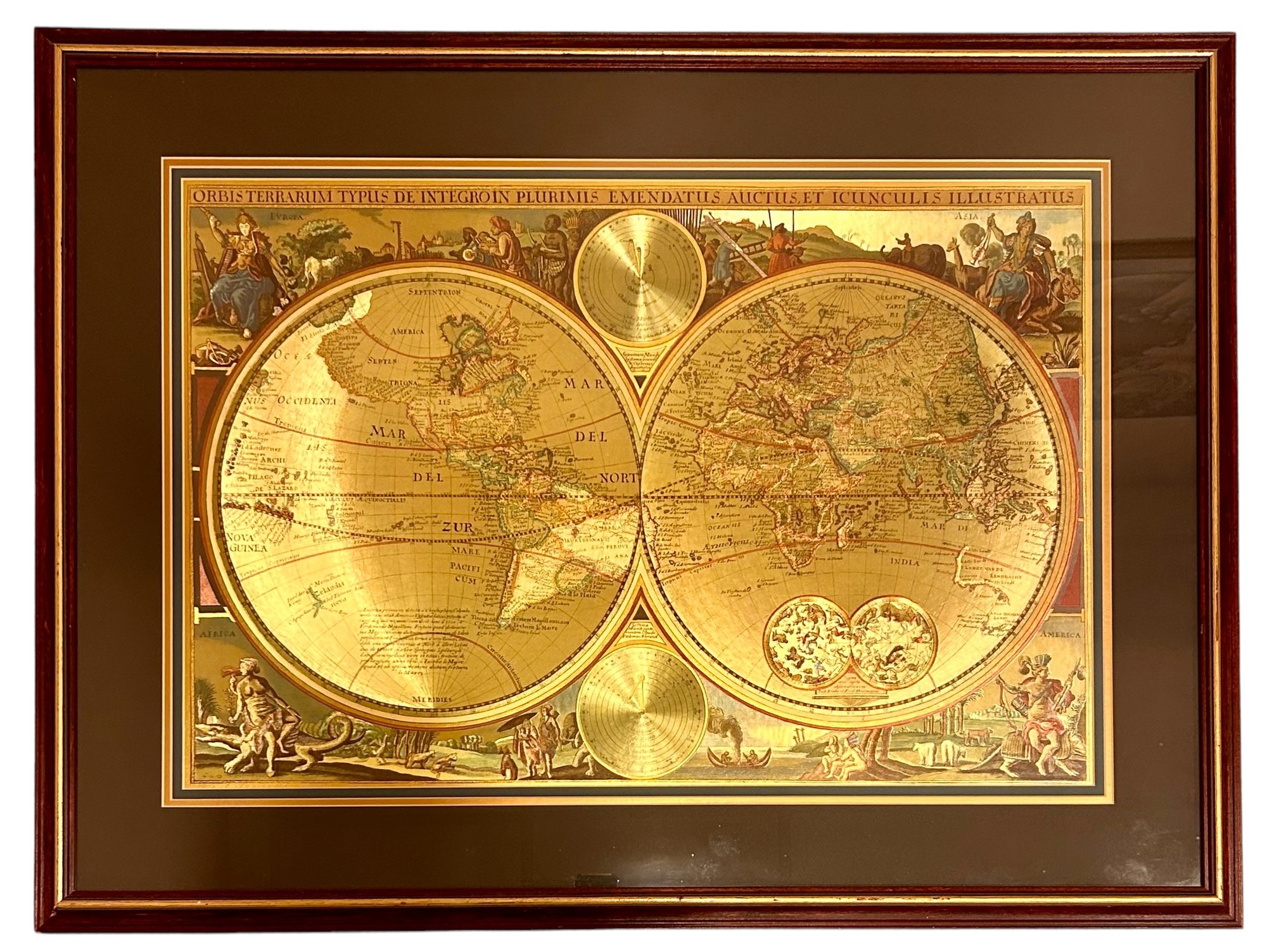 In good condition with a beautiful frame. It measures approximately 40” wide by 30” tall.