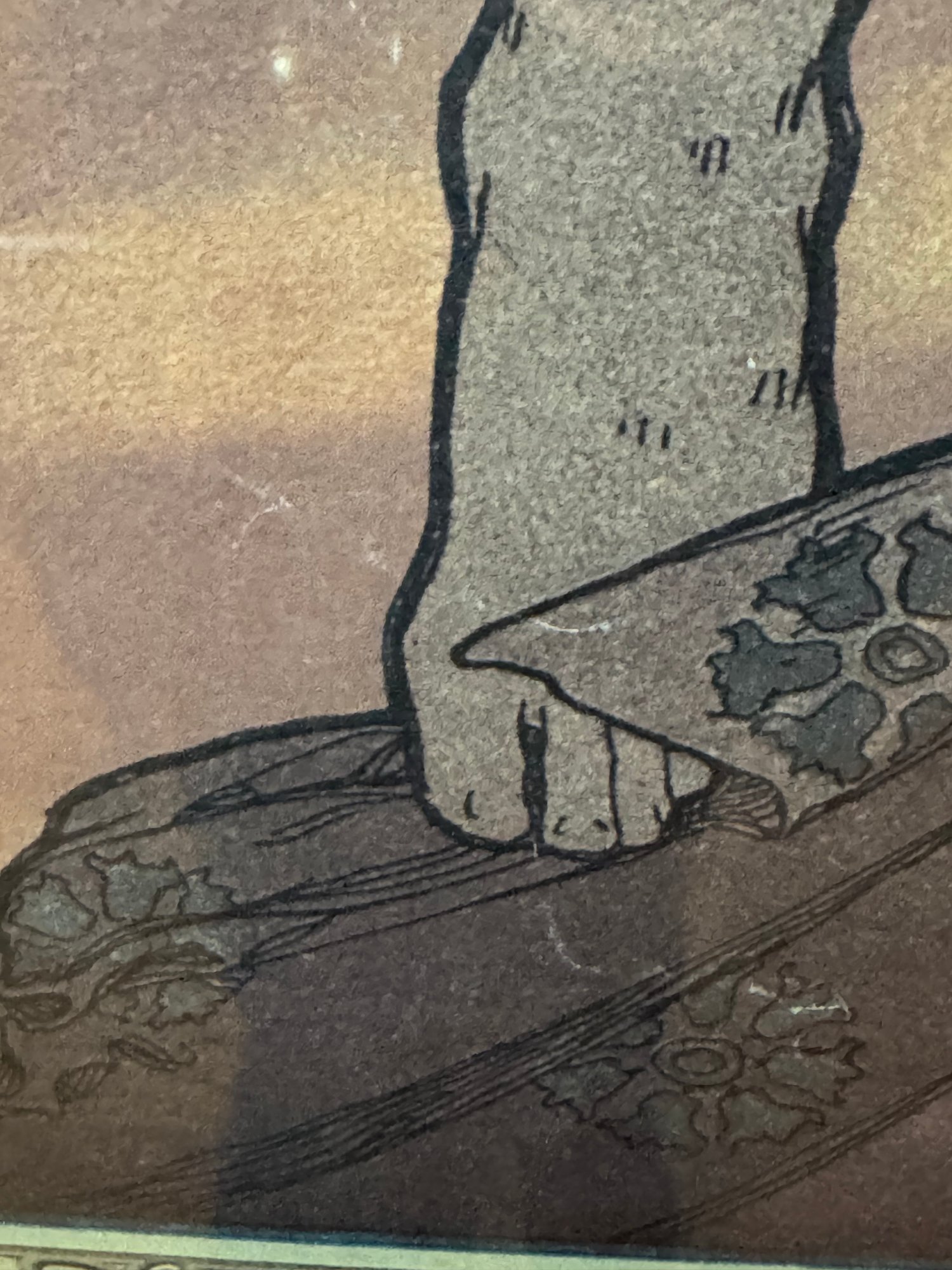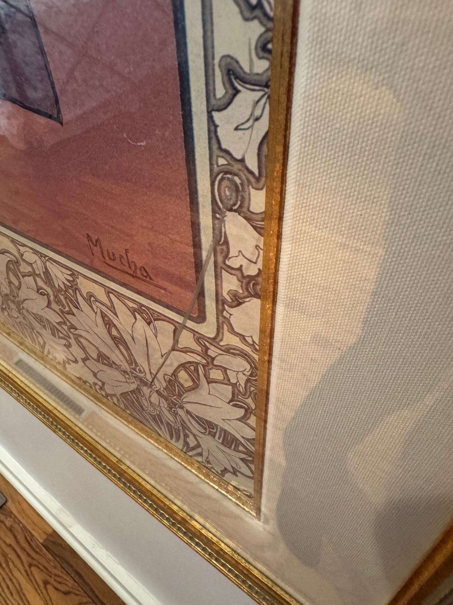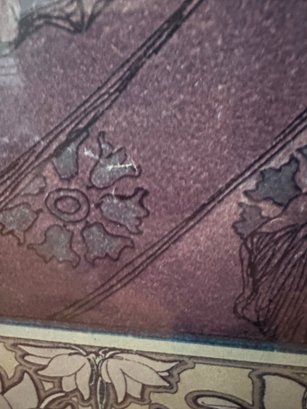 Notes: appears to have some scratches on print on her left side, plexiglass glass has scuff on lower right