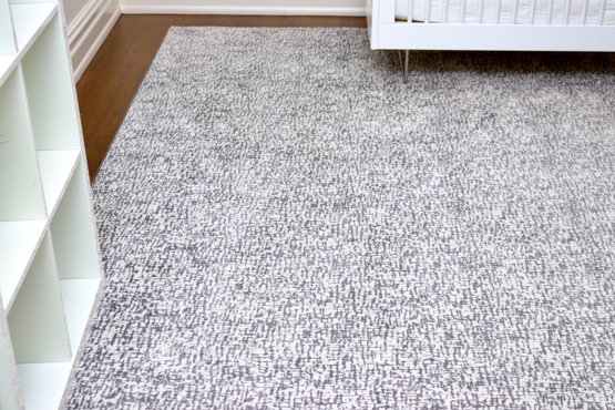 A modern area rug featuring a grey and white abstract pattern. Soft underfoot and visually versatile, it anchors any space with a fresh, contemporary feel — perfect for living rooms, bedrooms, or nurseries.
