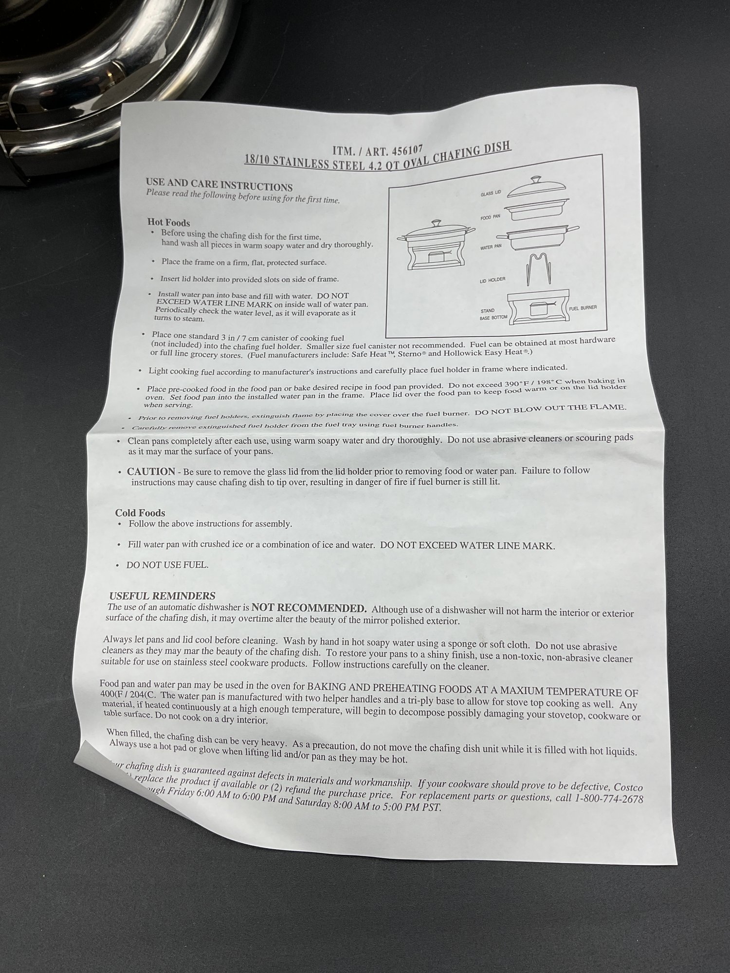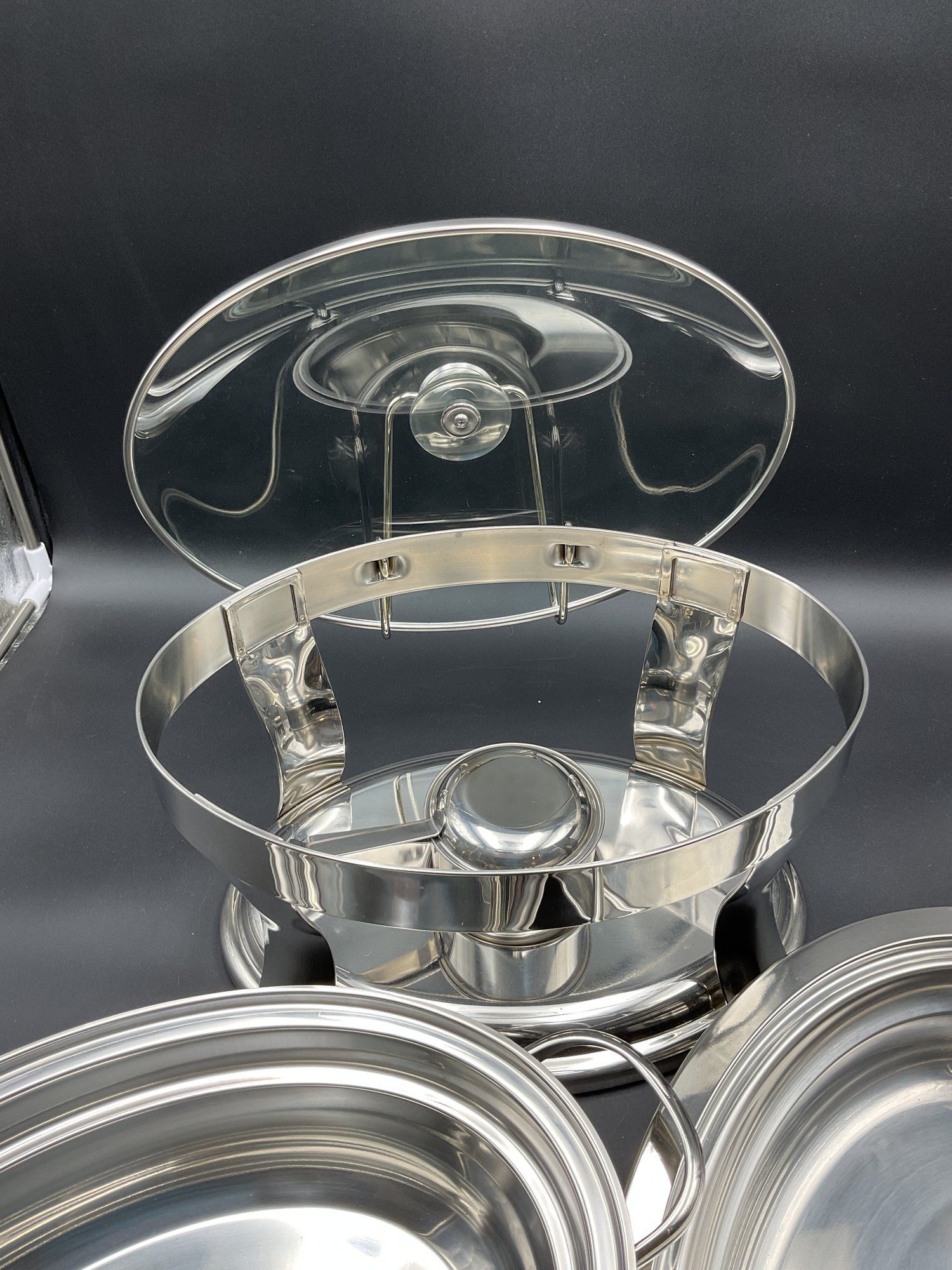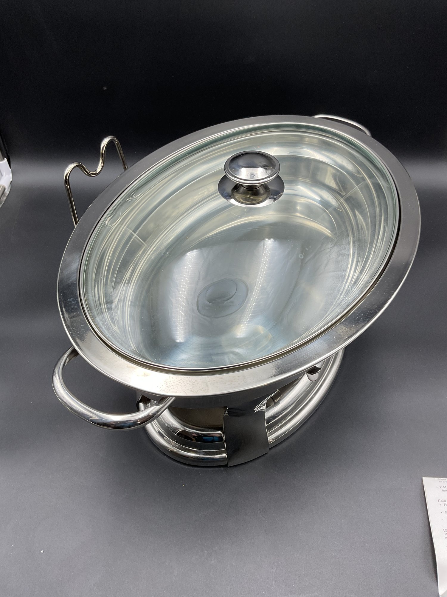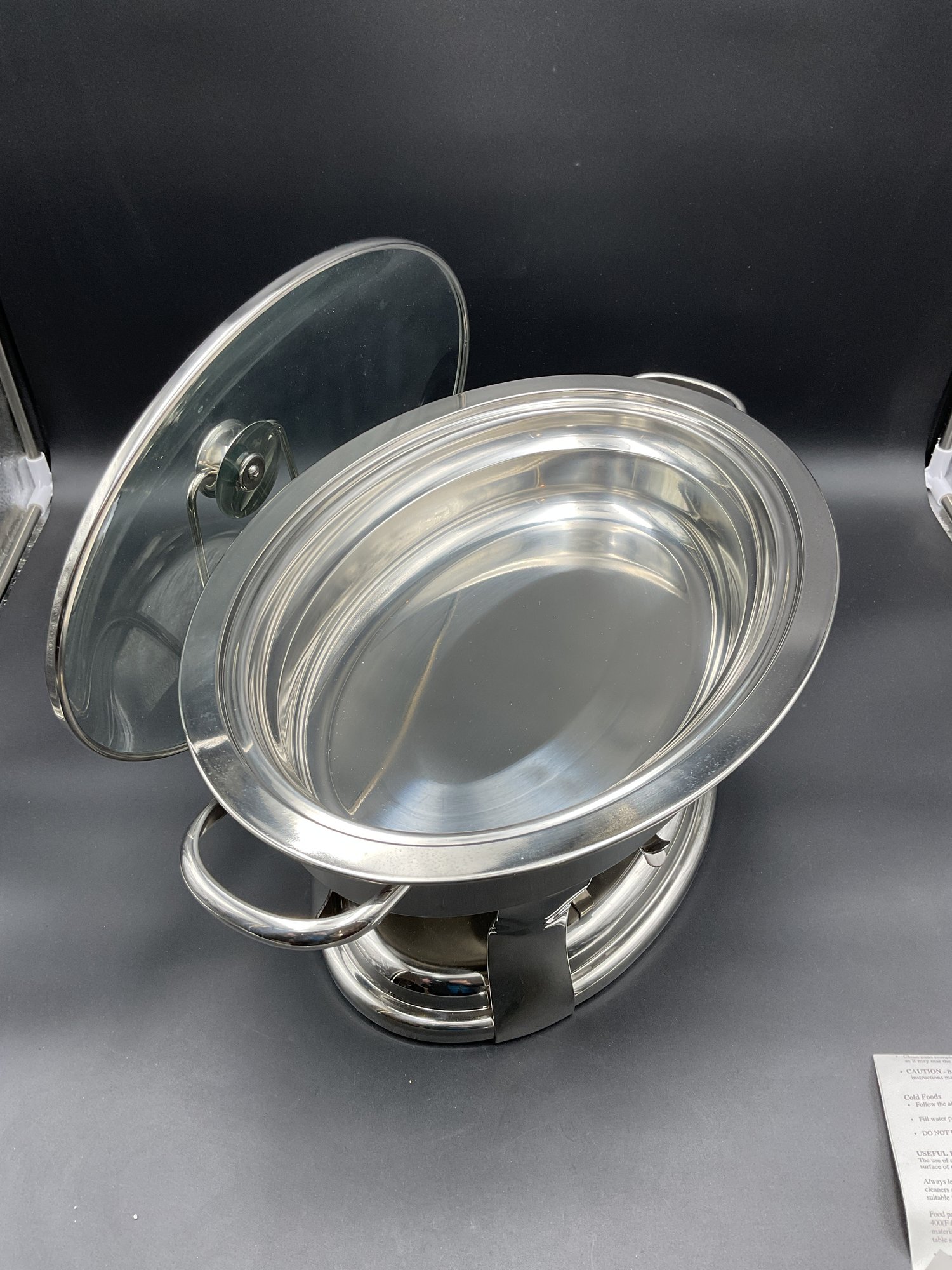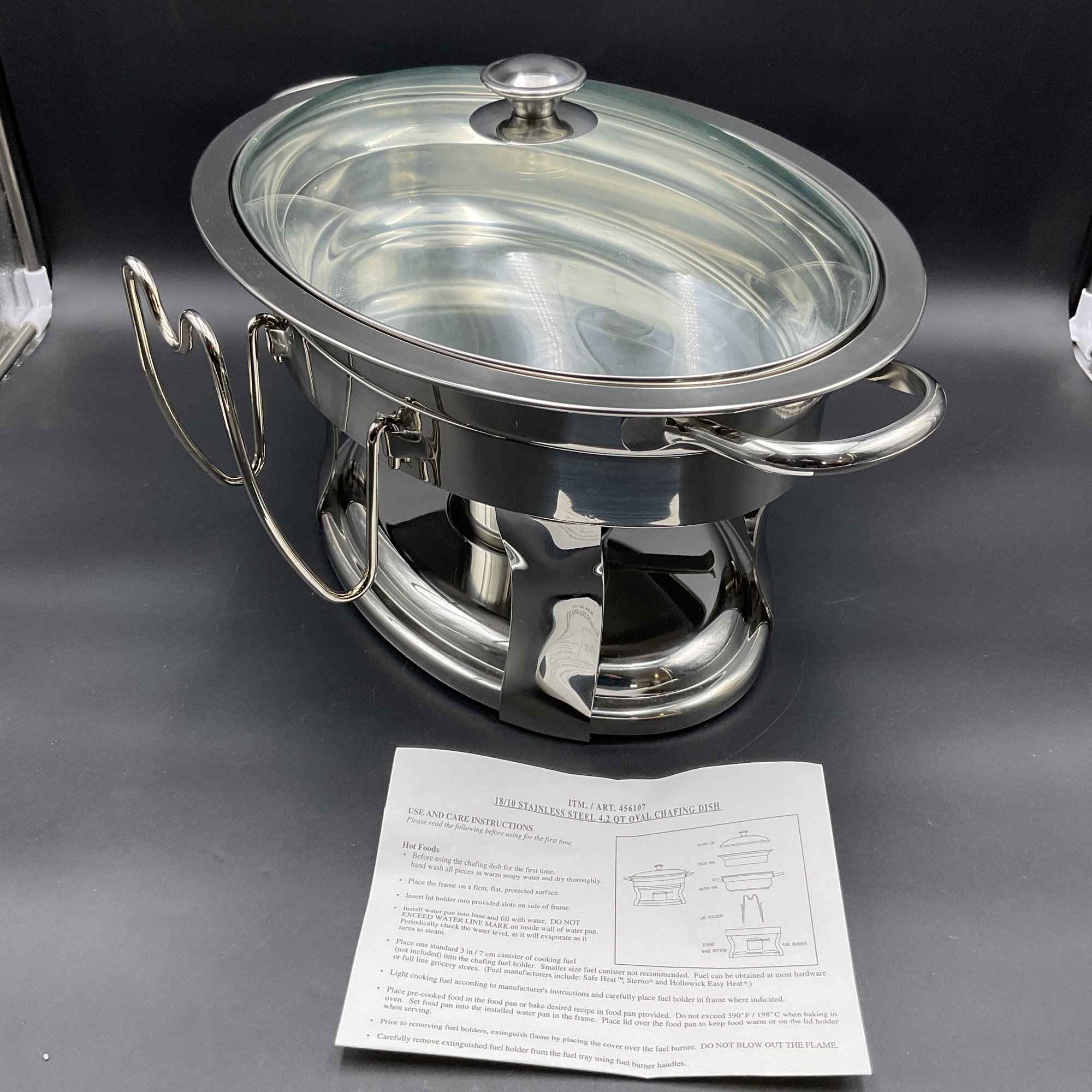 Large heavy stainless steel chafing dish in excellent (unused?) condition - from Costco. Super clean with all parts including original instruction sheet. Does not have original box.