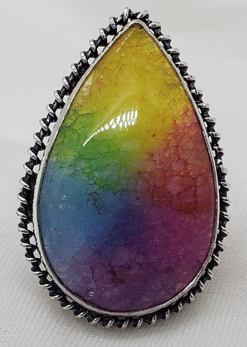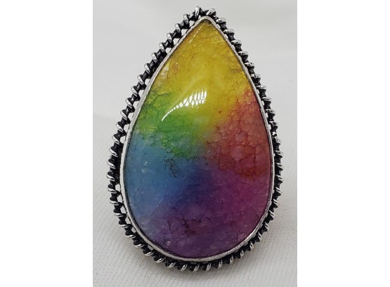 Large Silver plated size 8 Rainbow solar quartz ring.