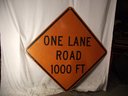Large Vintage Aluminum One Lane Road 1000 Feet Sign