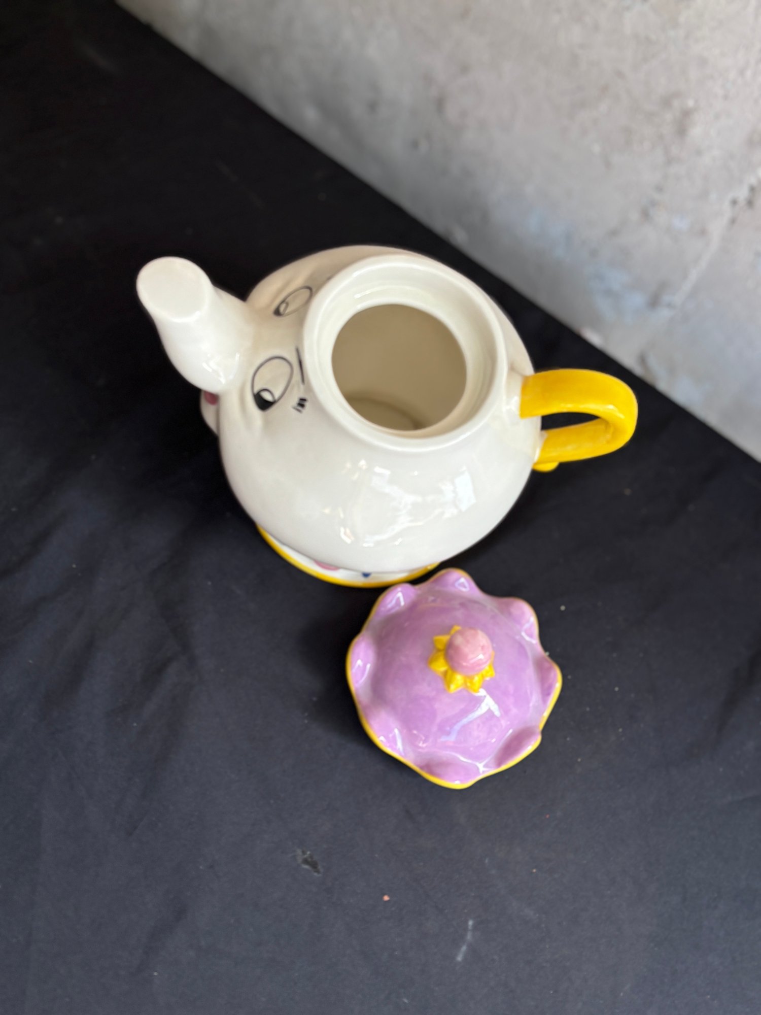 A bold and cheerful statement piece measuring approximately 9" tall. Perfect for collectors of novelty teapots, whimsical kitchen décor, or display.