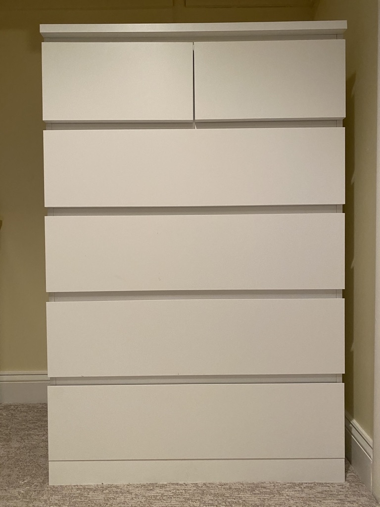 Can be used as dresser or cabinet in office. See listings for coordinating office pieces. 4 main bottom drawers topped by 2 smaller side-by-side drawers. 31.5 x 19 x 48.