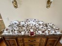 PLEASE LOOK CLOSELY, this is a HUGE very generous lot with every possible ancillary dish, box, powder, napkin holder, teapot, bowl, spoon rest, S&P, platters-large, square, oval, egg trays, chip and dip, covered butter, plus, plus, plus