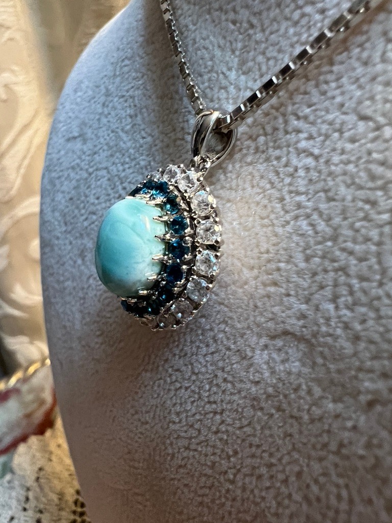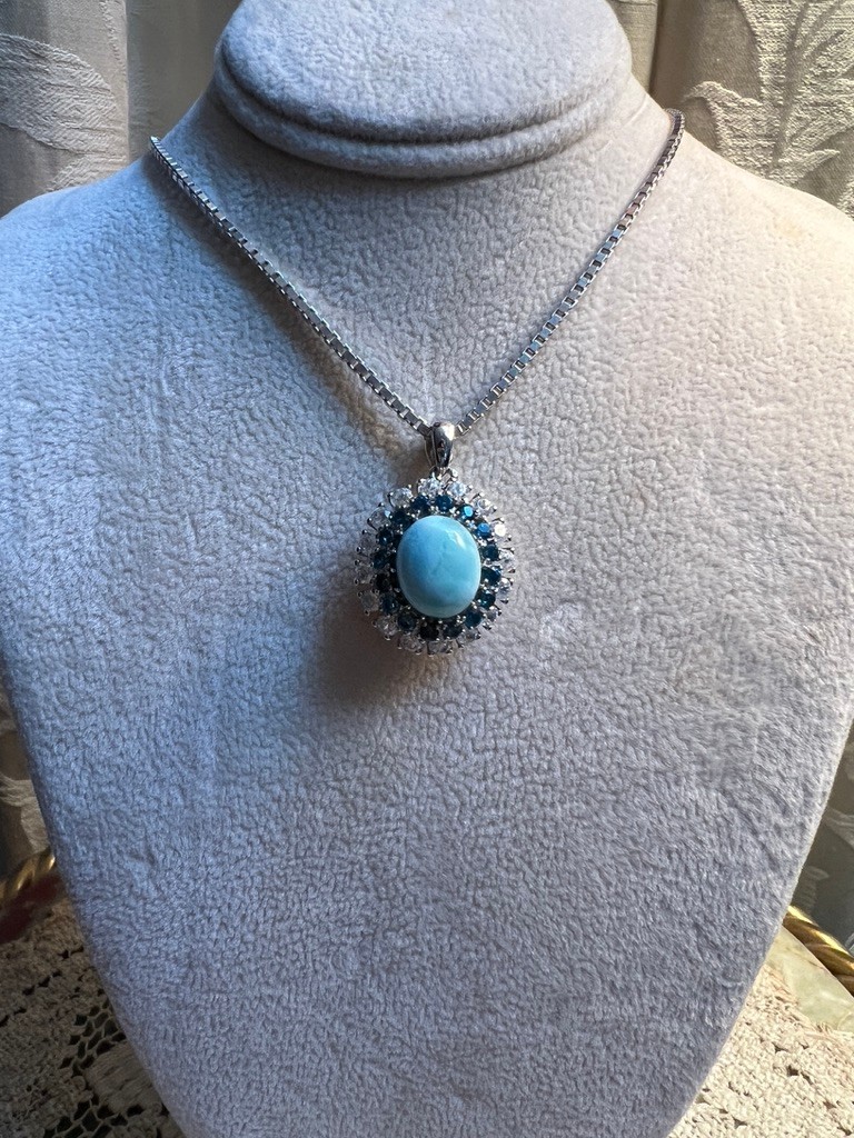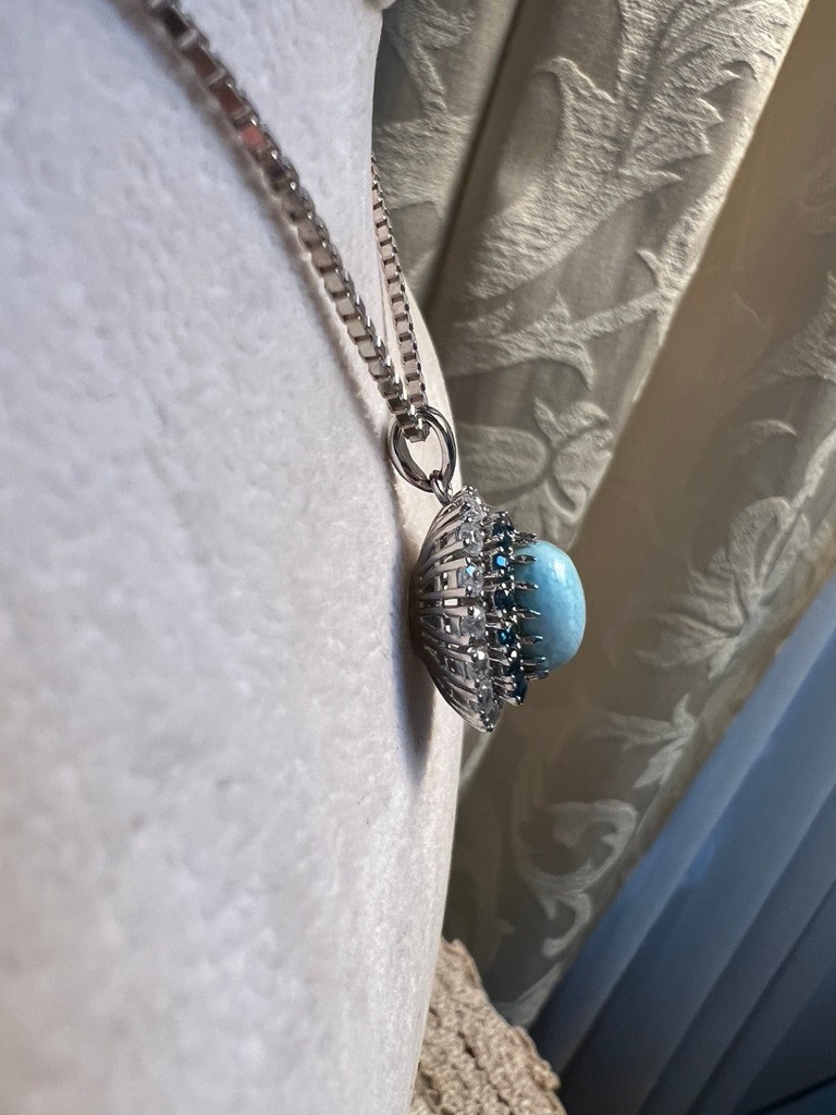 Larimar with London Blue Topaz, Swiss Blue Topaz, set in sterling silber, on an 18 inch box chain, NWOB, lovely piece,