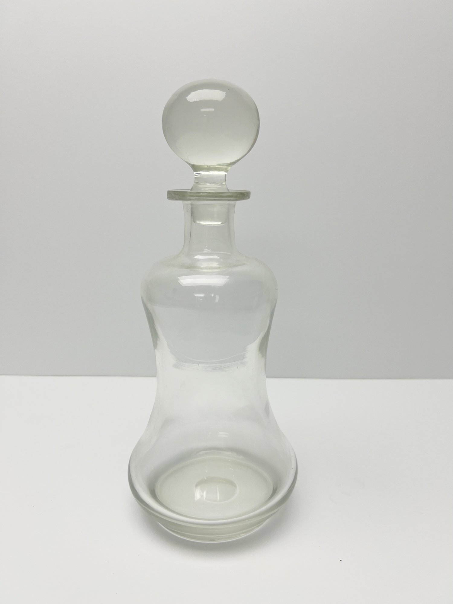 Clear glass decanter with a classic shape, perfect for serving wine, spirits, or as a decorative display piece.