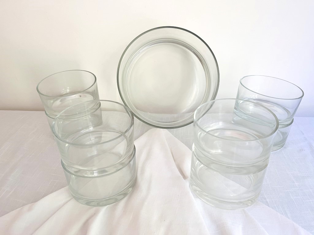 Large glass salad bowls with (6) 5" bowls.
