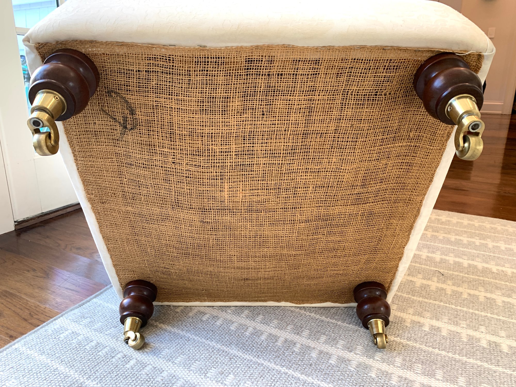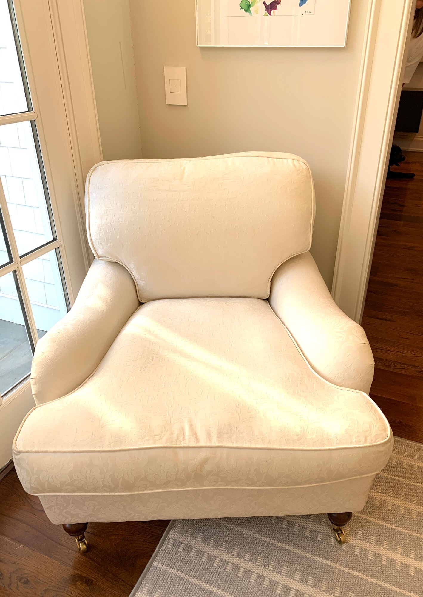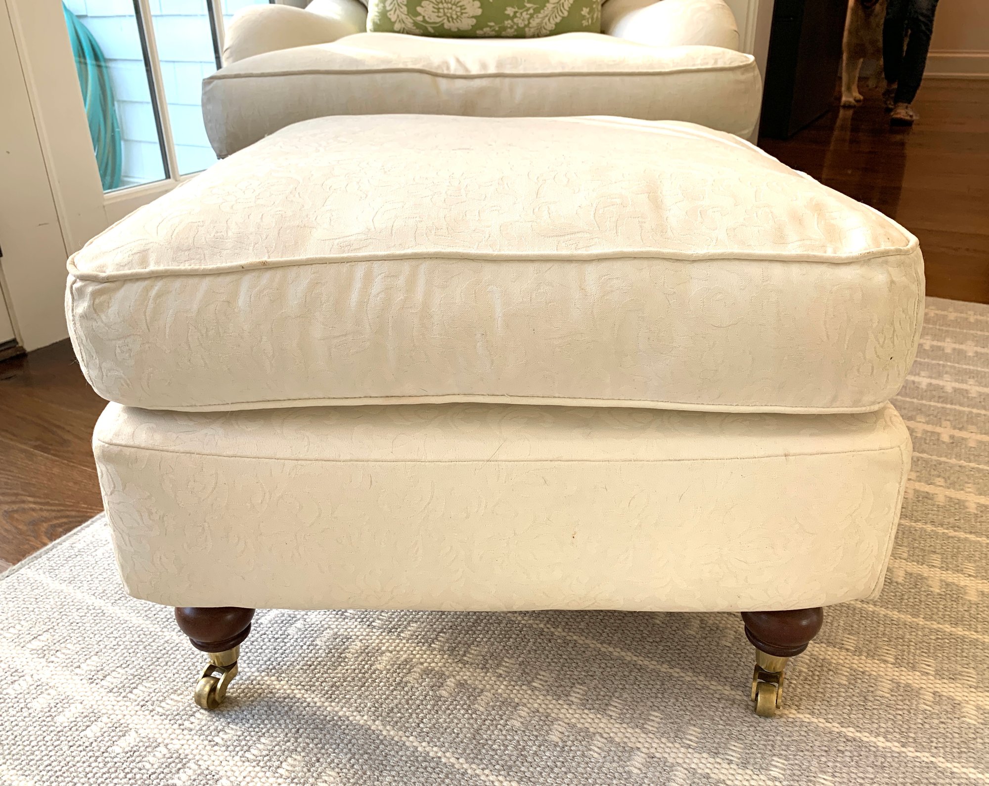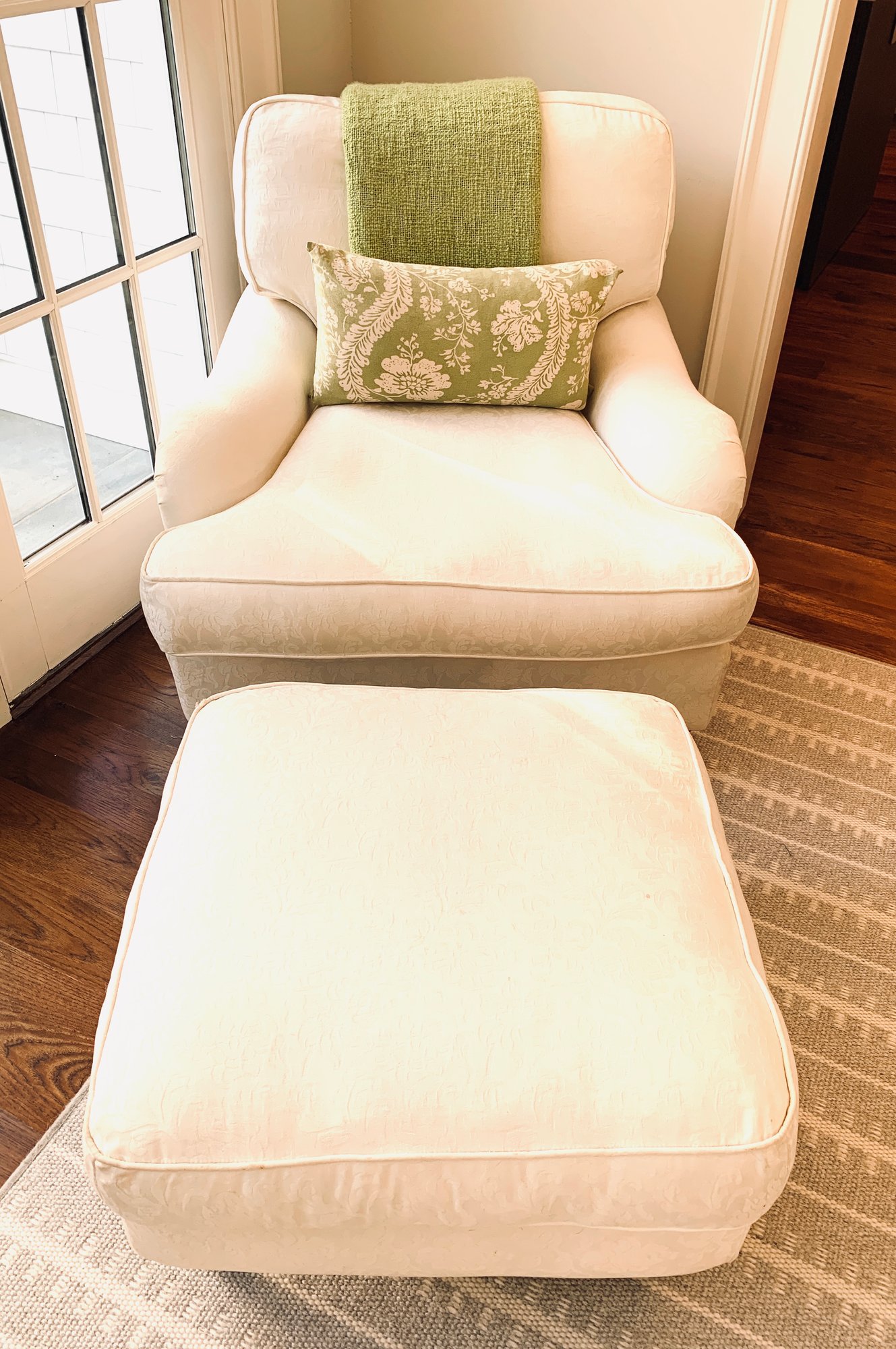 with two small spots on ottoman and some fading