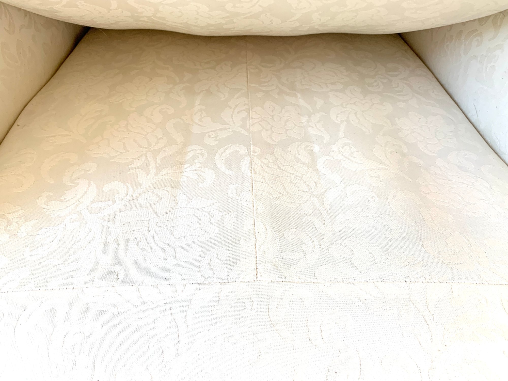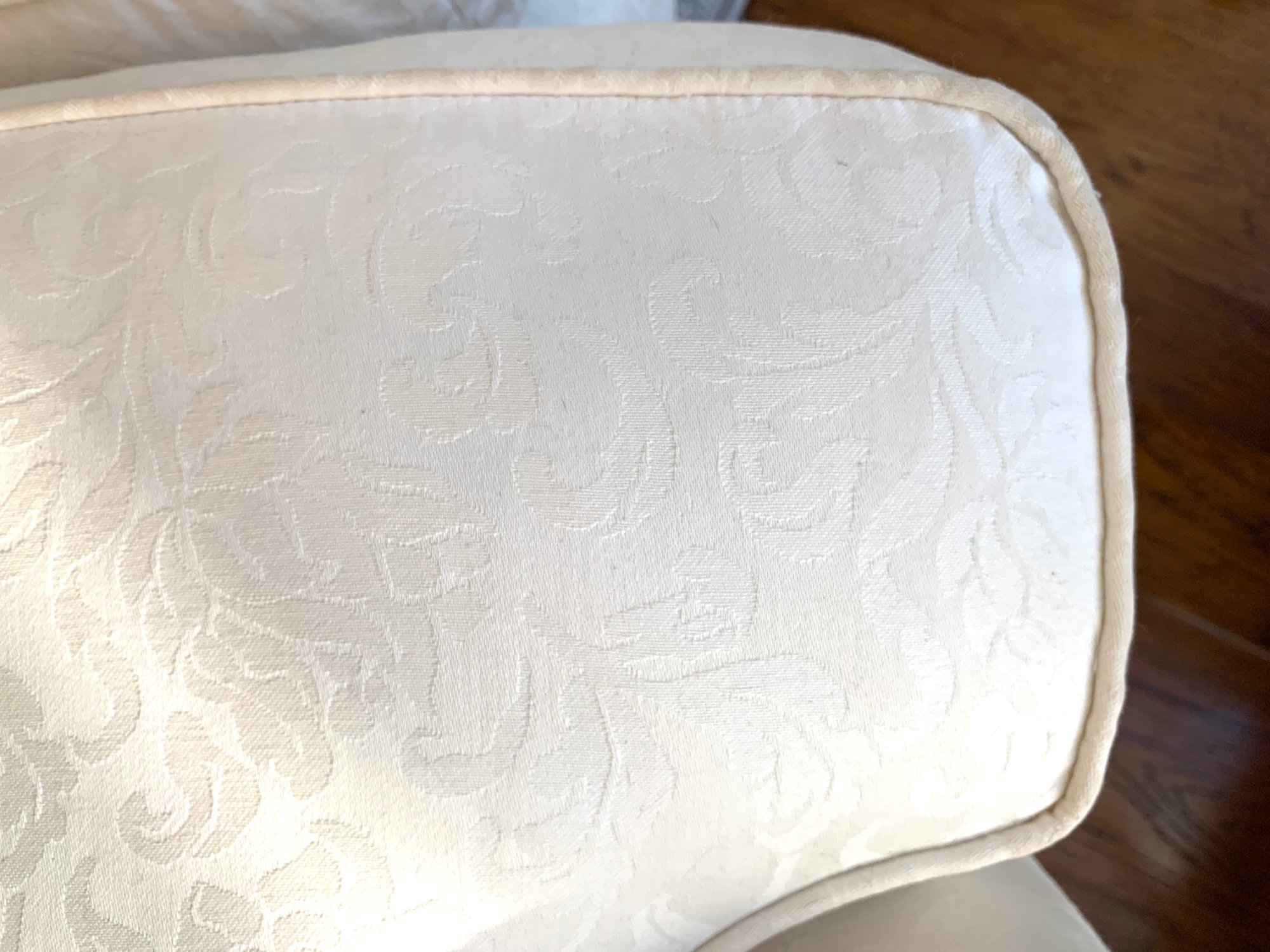 Upholstered in cream color patterned cotton
