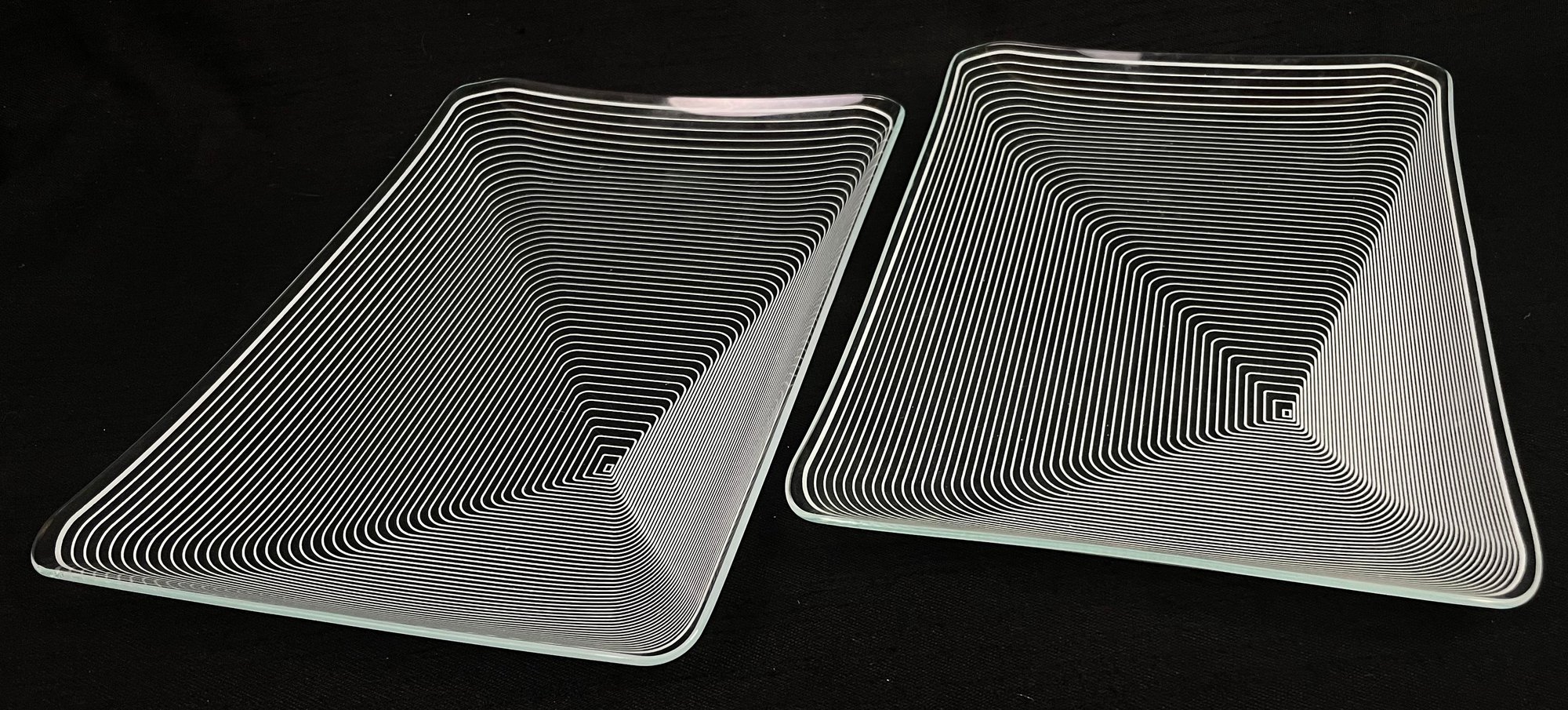 Lausitzer Glas Kristall Op Art Rectangular Crystal Dish Pair
