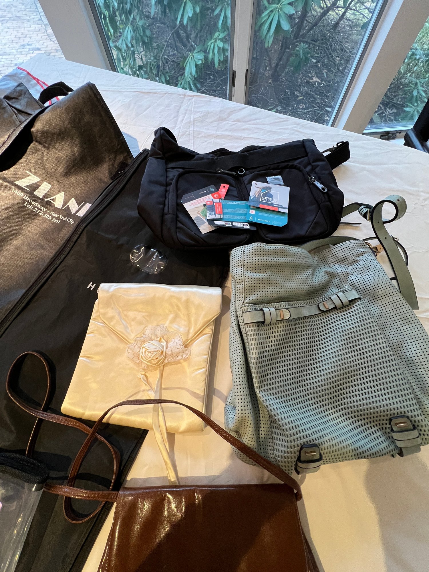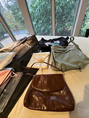 Leather purses with suit storage covers, plus