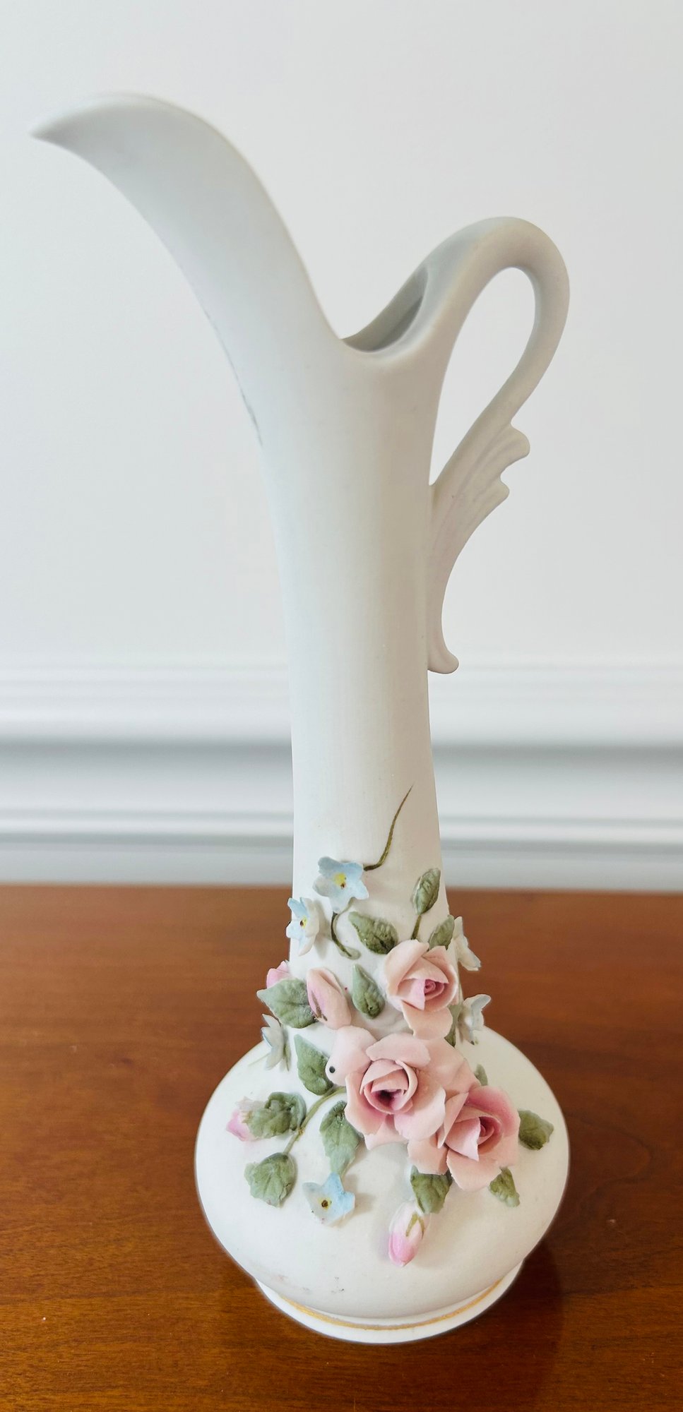 Lefton China Hand Painted Pitcher Vase With Raised Roses 7"