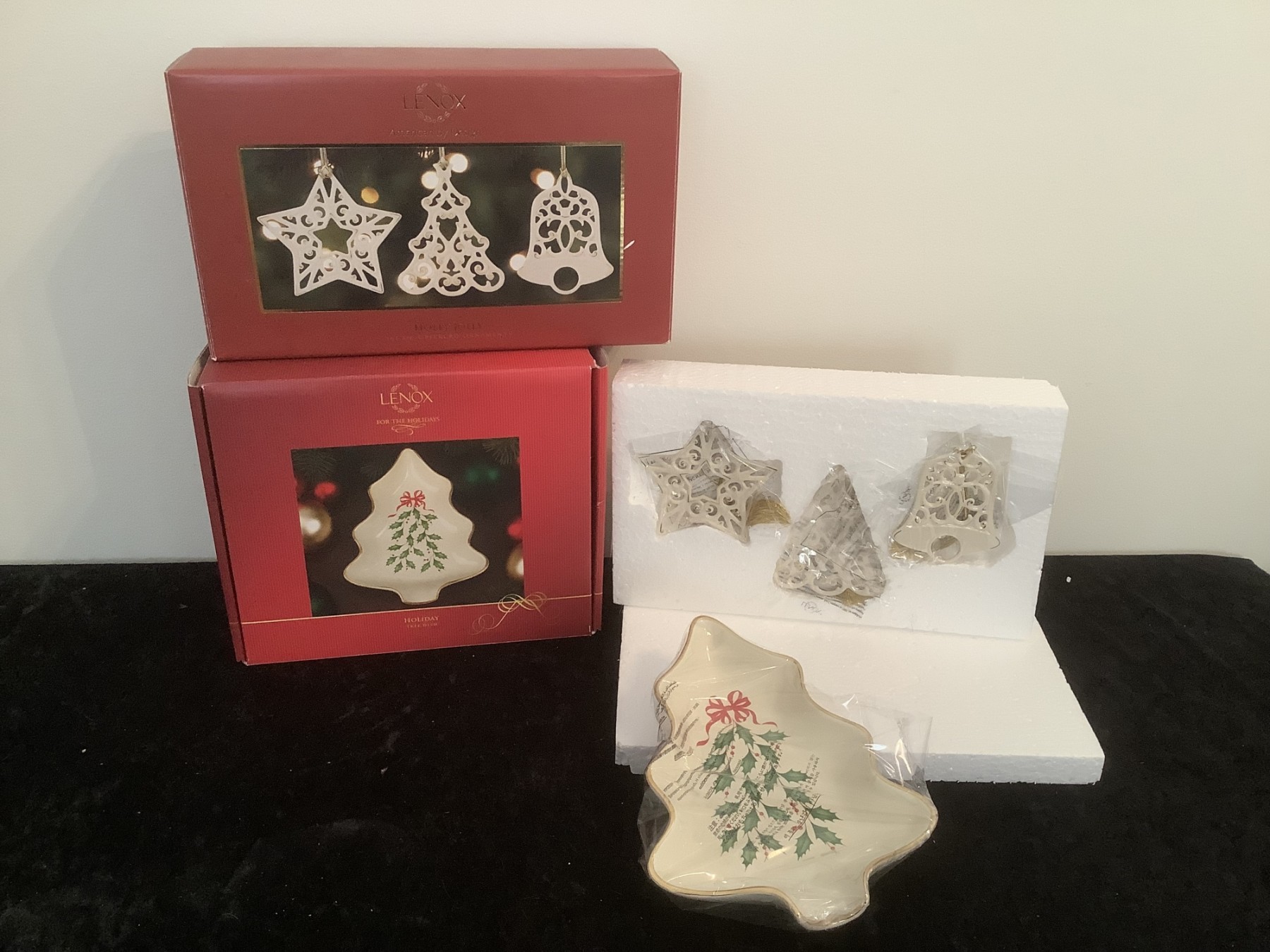Lenox Christmas Ornaments And Tree Dish In Boxes