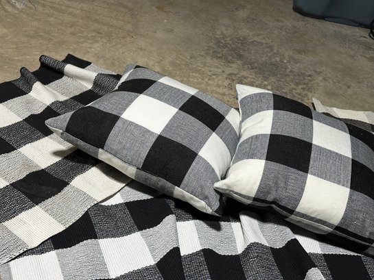 2 pillows, 2 mats 23 x 34; 1 runner 23 x 48 and one runner 23 x 57