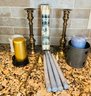 3 pairs of candlesticks, a pair of candle snuffers and more
