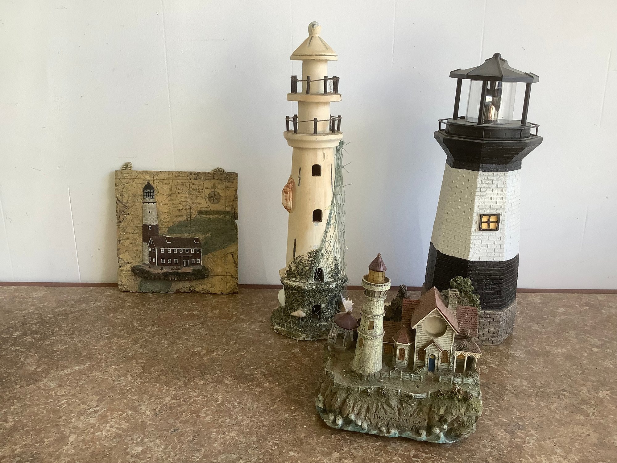 small lighthouse figurine has some broken pieces as shown in photos