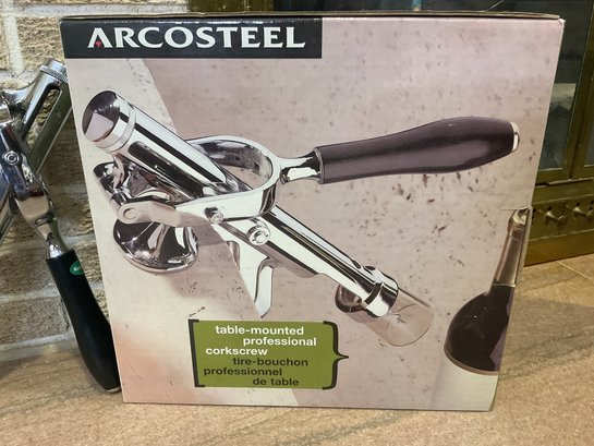 this useful lot includes the Arcosteel professional corkscrew like new in open box