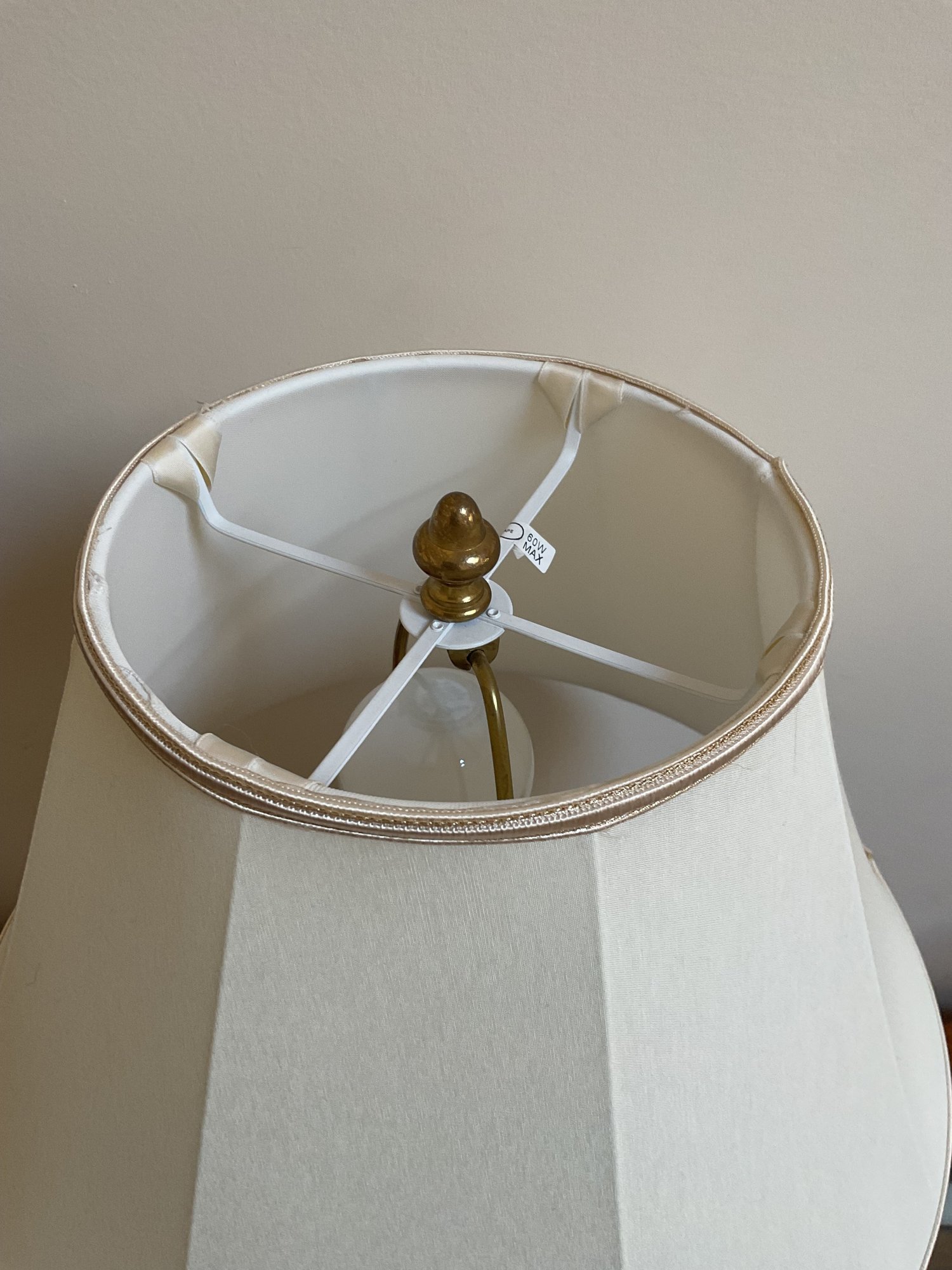 Approx 19 1/2 in tall x shade base is 14 in dia
