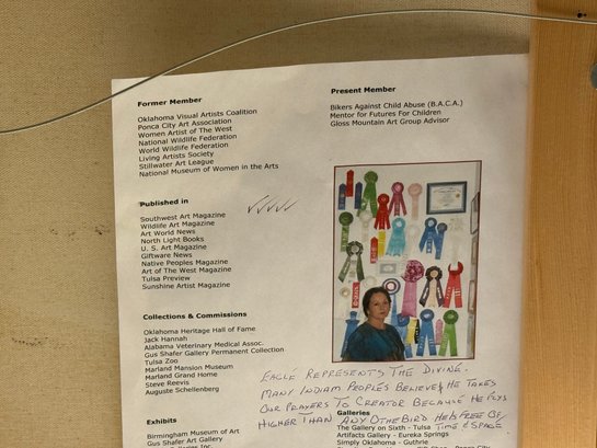 Bio: As a "gypsy artist", I followed the national shows and exhibits for about 45 years, after gaining professional status in high school with the sale of my first painting. Self taught, I worked in most mediums and settled with oils. Subject matter was wildlife, portraits and Native Peoples. I have taught workshops, children's summer classes at Ponca City OK and adult classes at Vo Tech in Fairview OK.