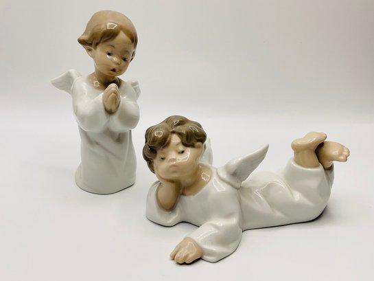 This lot features a charming pair of authentic Lladro fine porcelain figurines handcrafted in Spain. Both pieces showcase the classic soft pastel palette and high-gloss glaze finish synonymous with Lladro’s world-renowned craftsmanship.