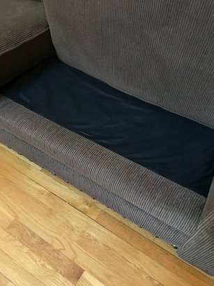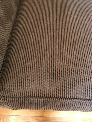 The piece appears to be in good pre-owned condition with plush cushions. Please refer to the photos for a close-up look at the corduroy texture and the manufacturer's certification tag.