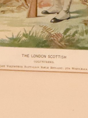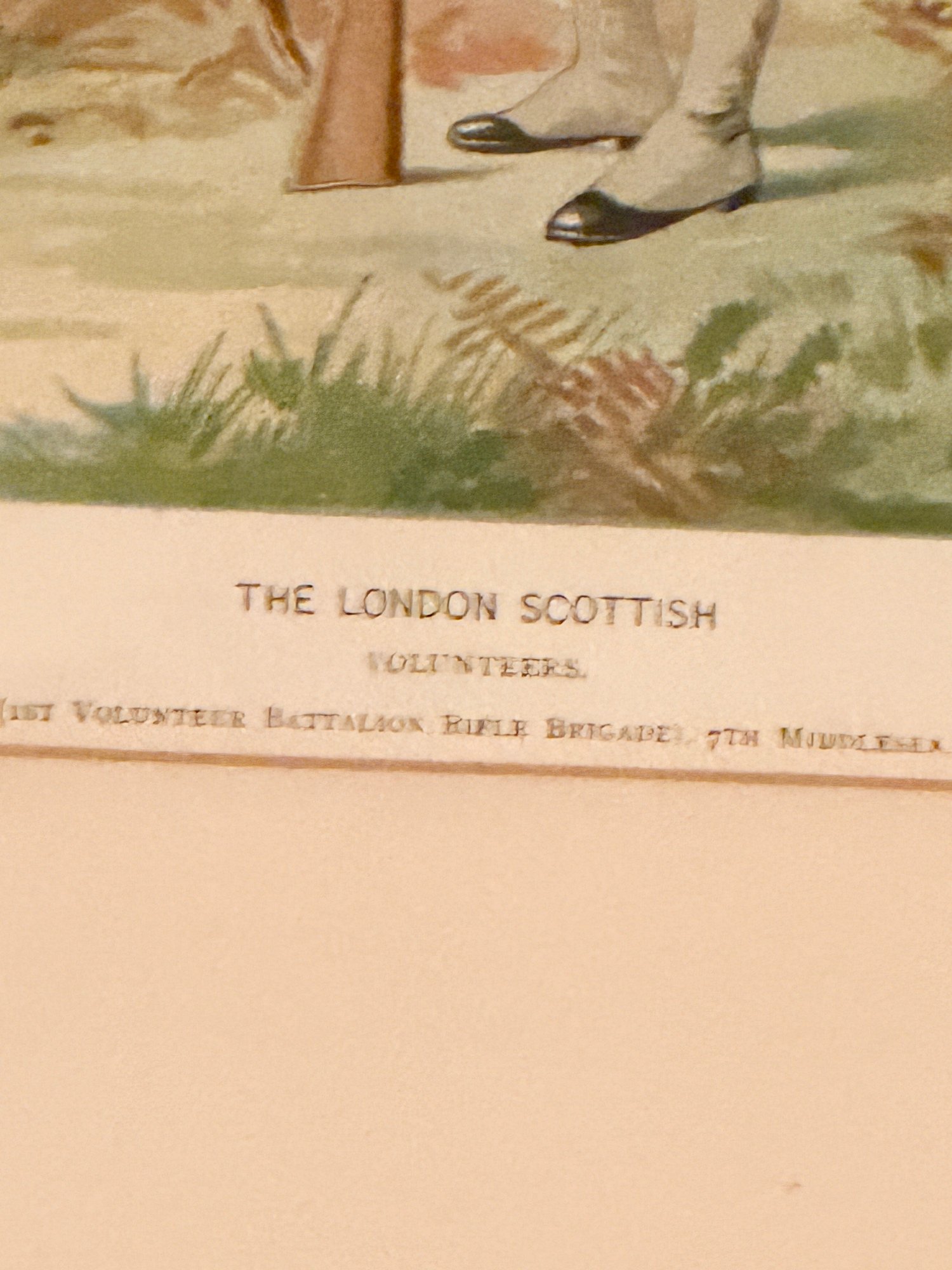 London Scottish Volunteers (1st Volunteer Battalion Rifle Brigade) antique print. The original chromolithograph from Walter Richard’s ‘Her Majesty’s Army’ Published c.1890.