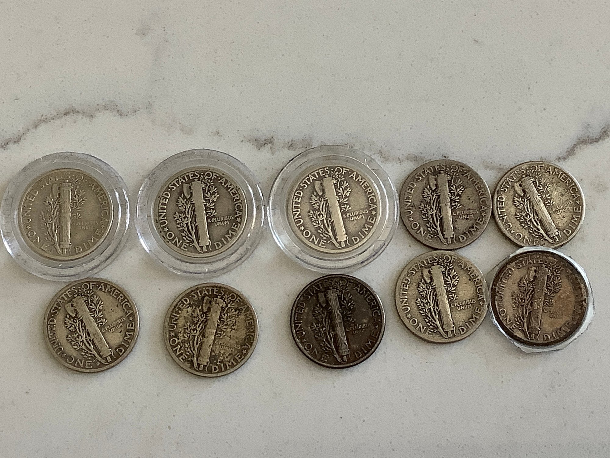 Lot Of 10 - Vintage Silver Mercury Dimes #173