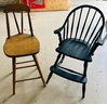 Lot Of 2 Primitive Style Wooden Chairs