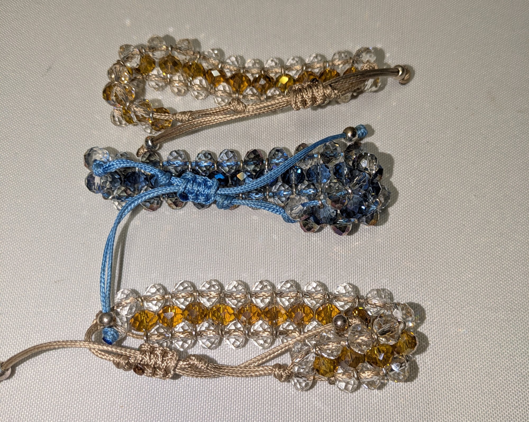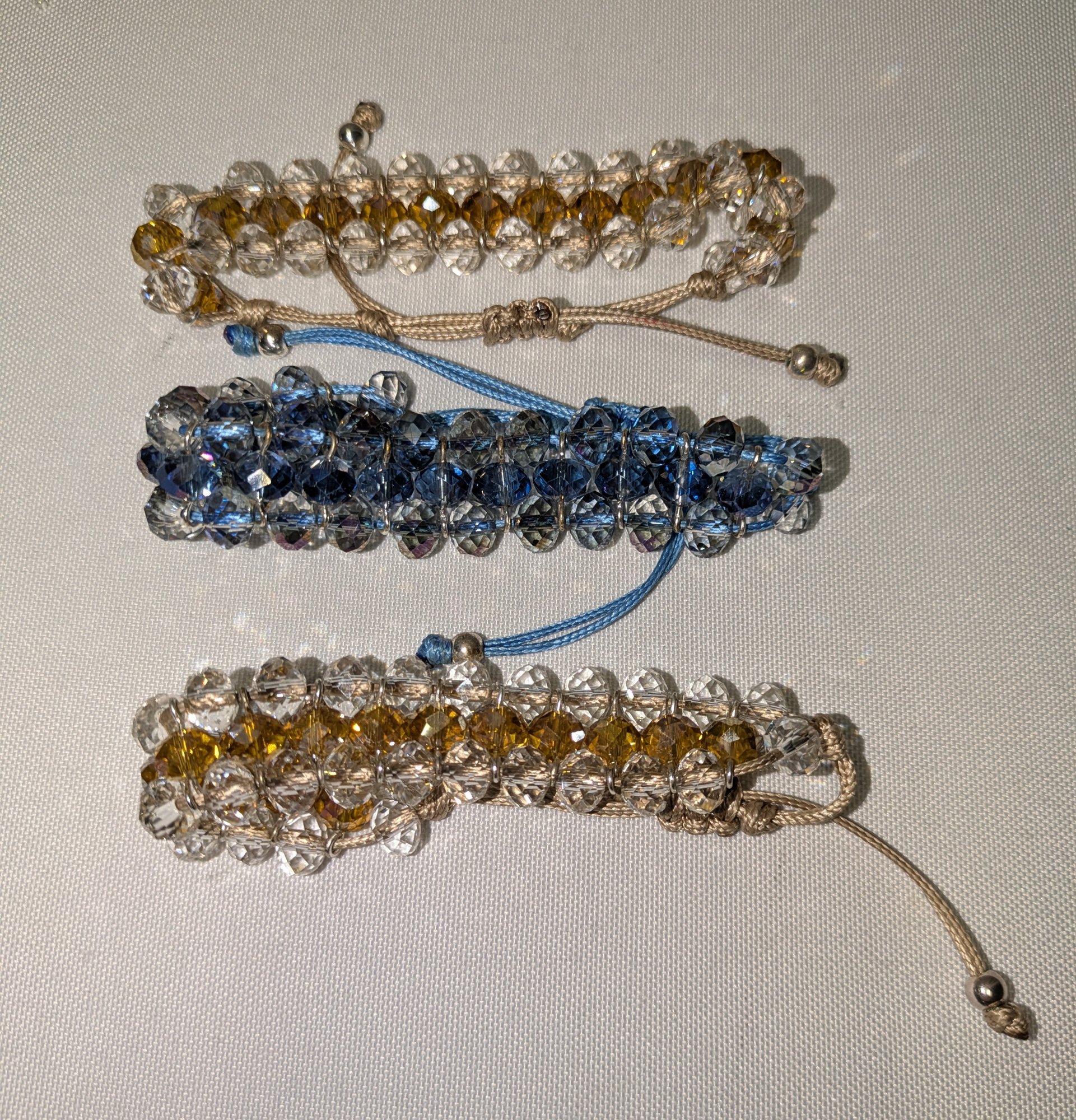 Lot of 3 Crystal Design Adjustable Band Braclets. Excellent Condition. Please see all photos as part of the description and condition.