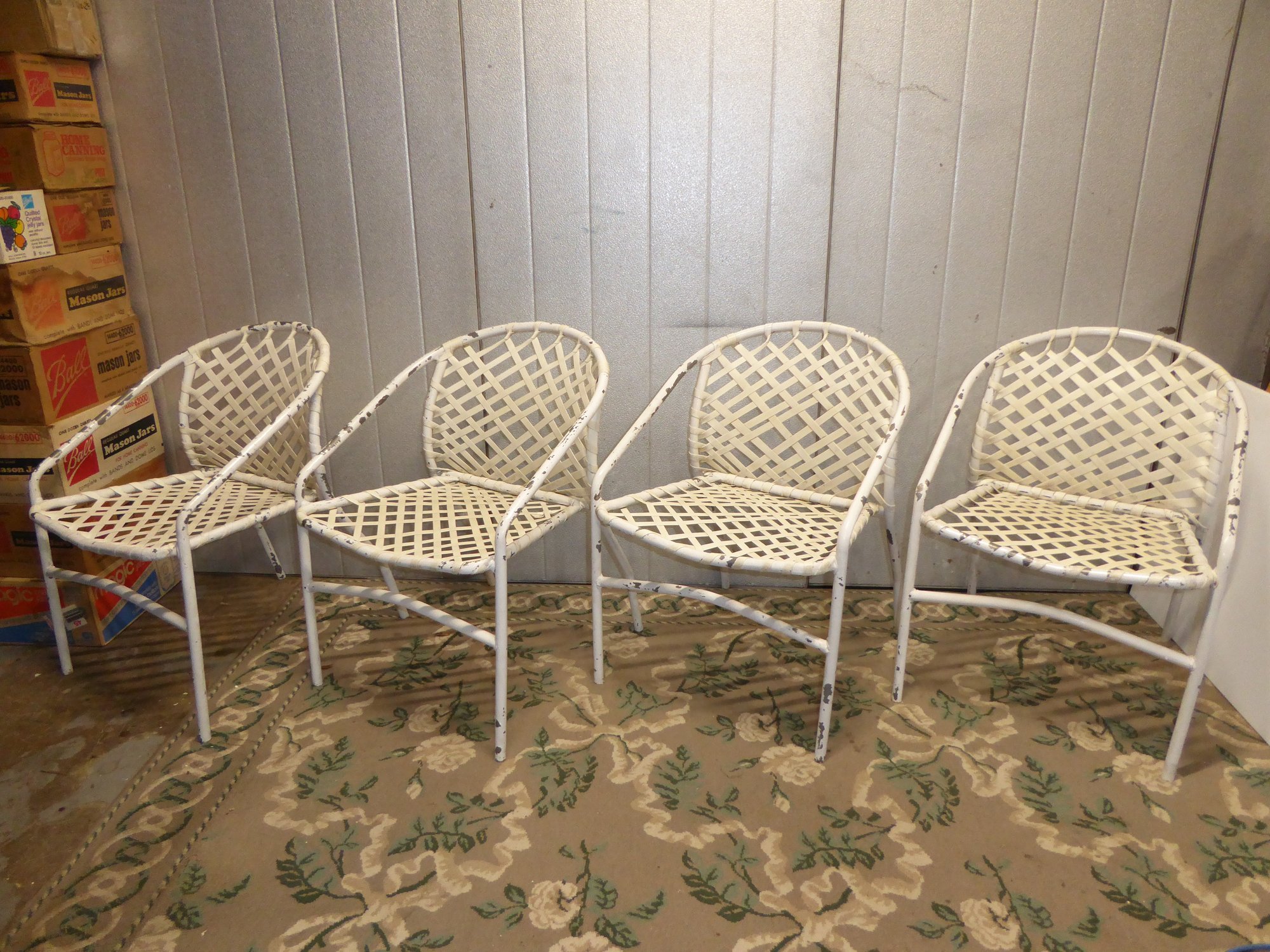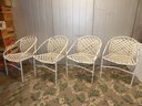 Lot Of 4 Vintage Brown Jordan Stackable Metal Woven Chairs