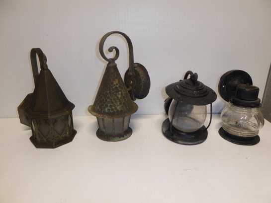 Lot Of 4 Vintage Painted Brass Outside House Lights