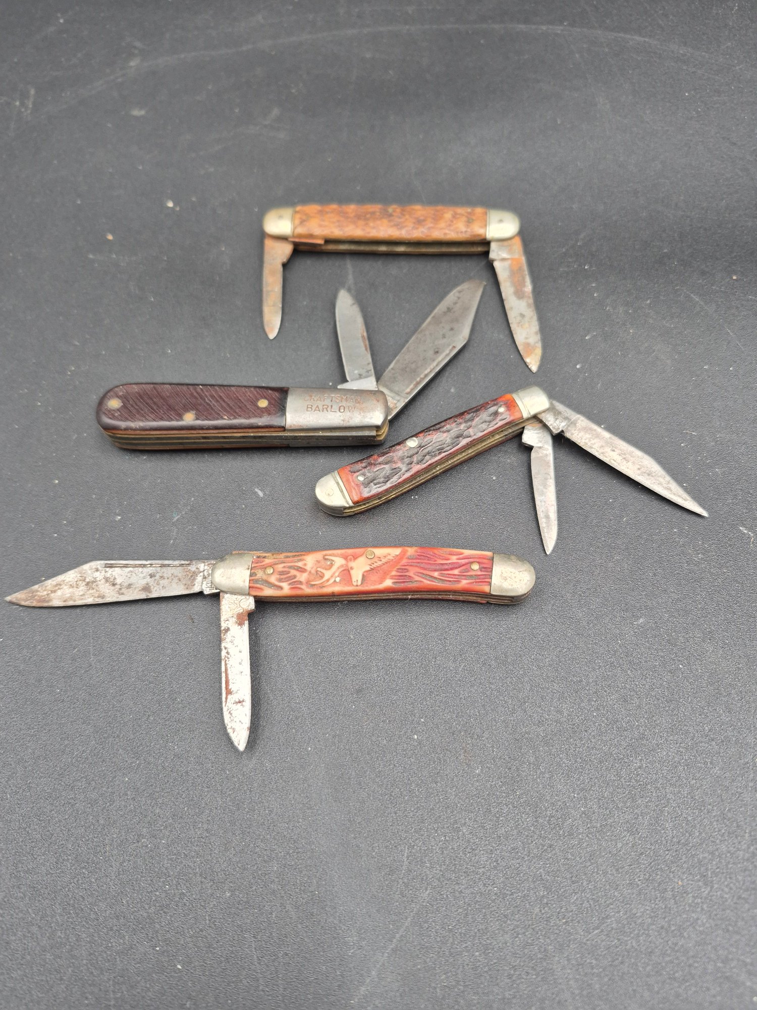 All are vintage 2-blade folding/camp knives, by various makers. Please refer to the photos for further details and a condition report.