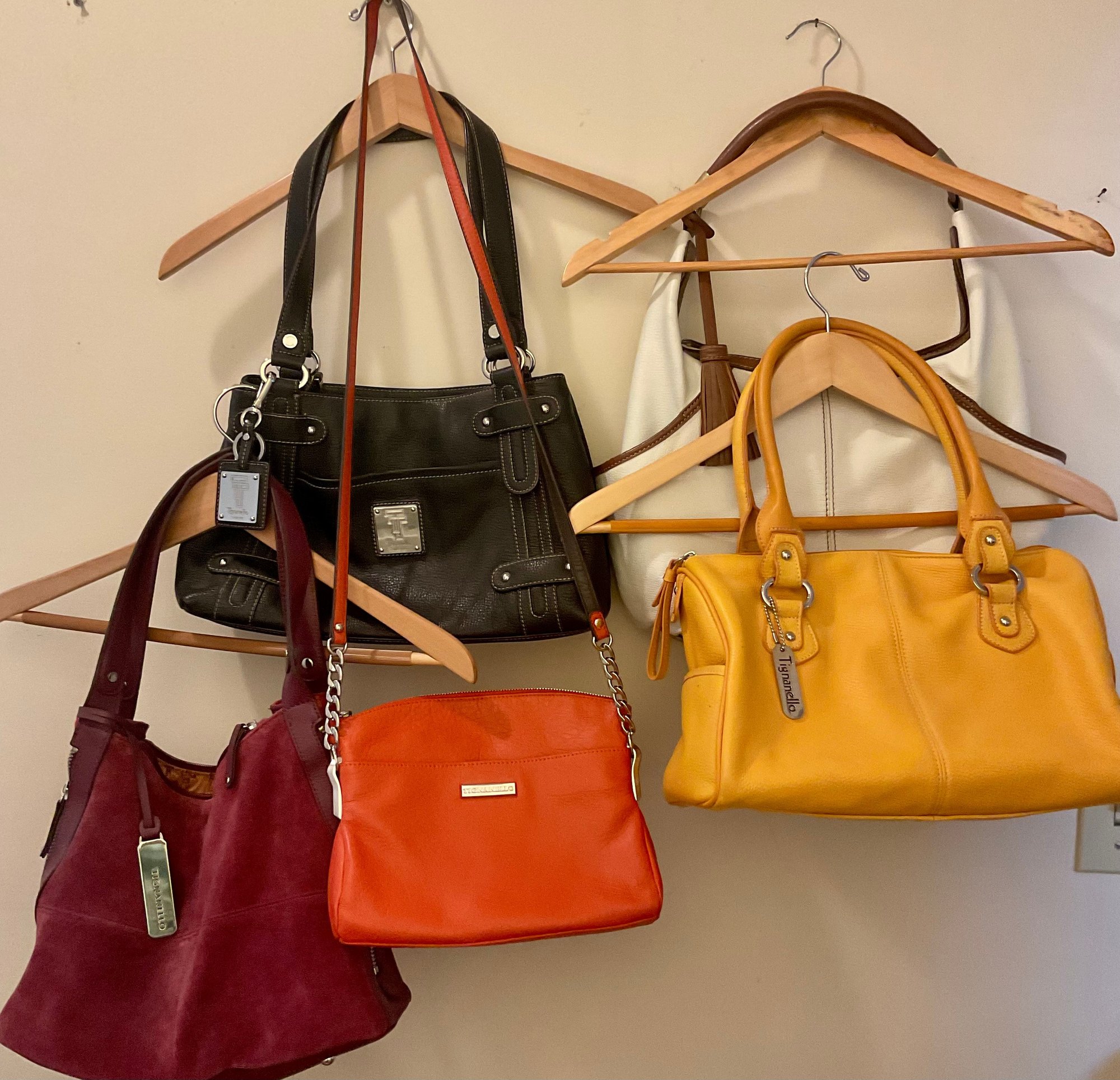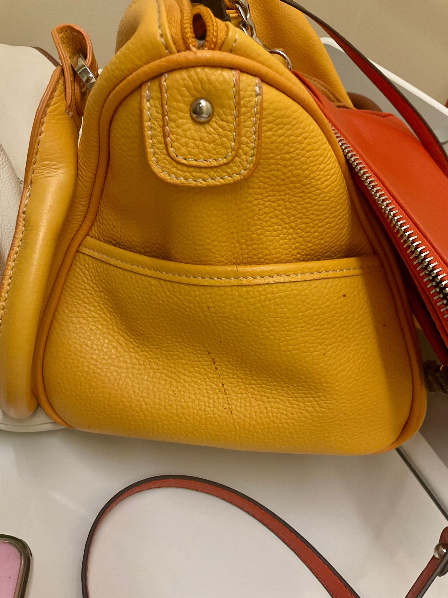 Couple of the purses have a small pen mark and maybe a few minor scuffs other then that we cant find anything else wrong! Clean and smoke free