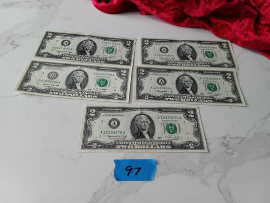 Lot Of 5 - Two Dollar Bills #97