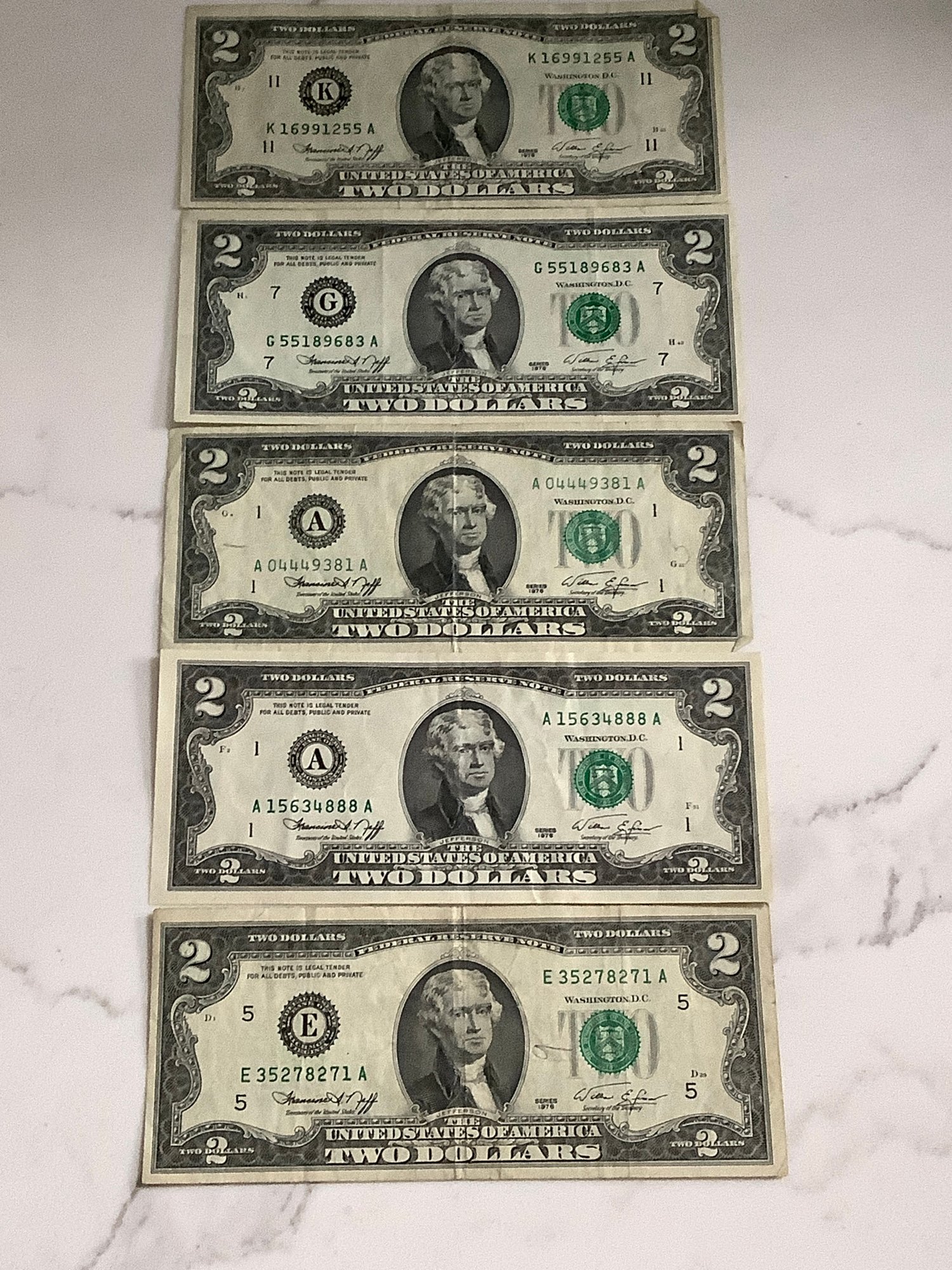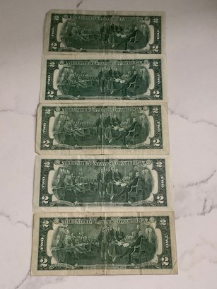 Lot Of 5 Vintage 1976 Two-dollar Bills #80