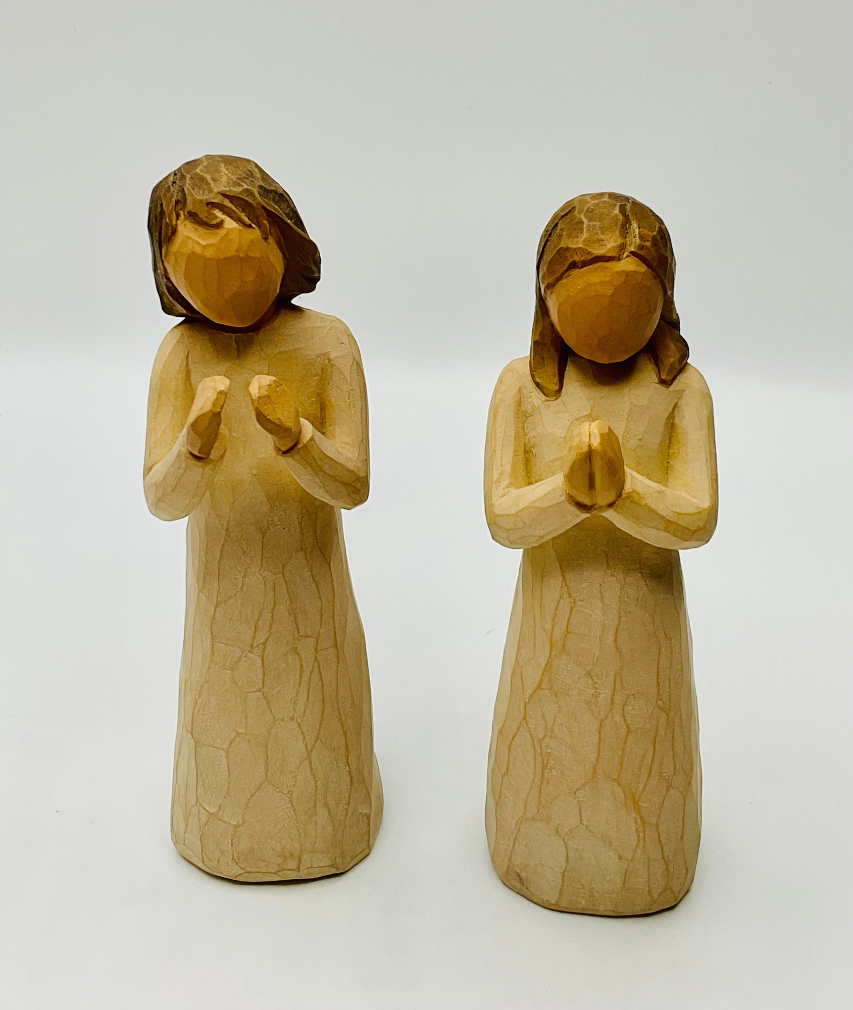 Markings: Bottoms are marked with official Willow Tree stamps; one specifically identified as the 2001 "Angel of Christmas Spirit."