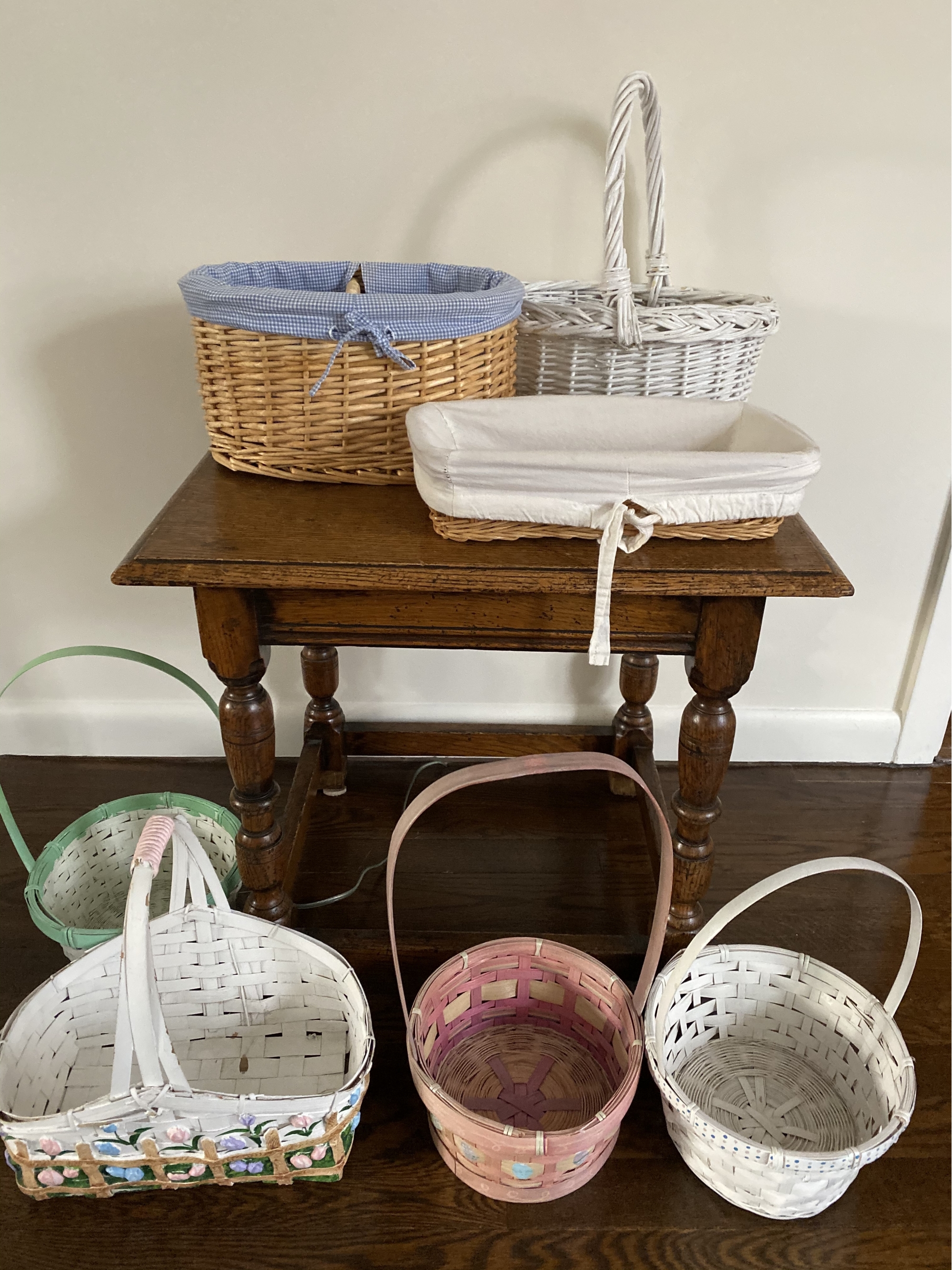Lot of 7 baskets of various sizes and colors. Perfect for Easter brunch or a family egg hunt.