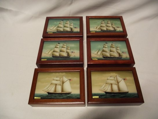 Lot Of Six (6) Hand Painted Glass Top Wooden Boxes