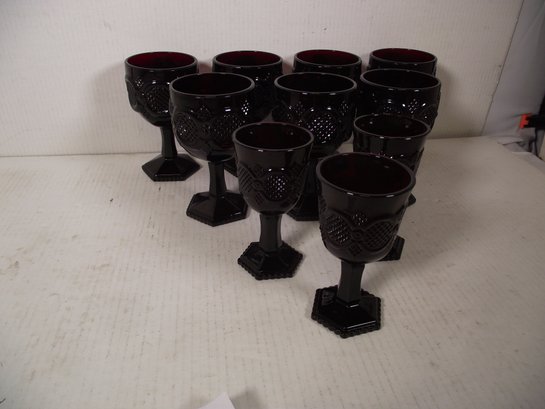 LOT OF SMALL AND LARGE RED GLASS GOBLETS BY AVON. SEE PHOTOS FOR CONDITION.