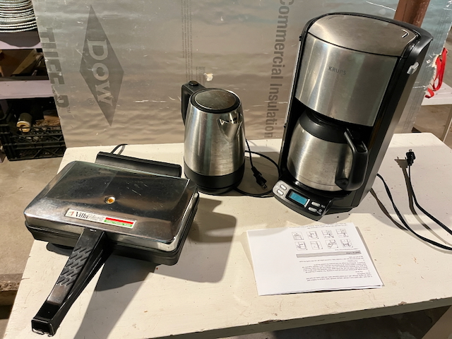 Villaware Pizelle Baker, Krups Coffee Maker, Hamilton Beach Electric Kettle