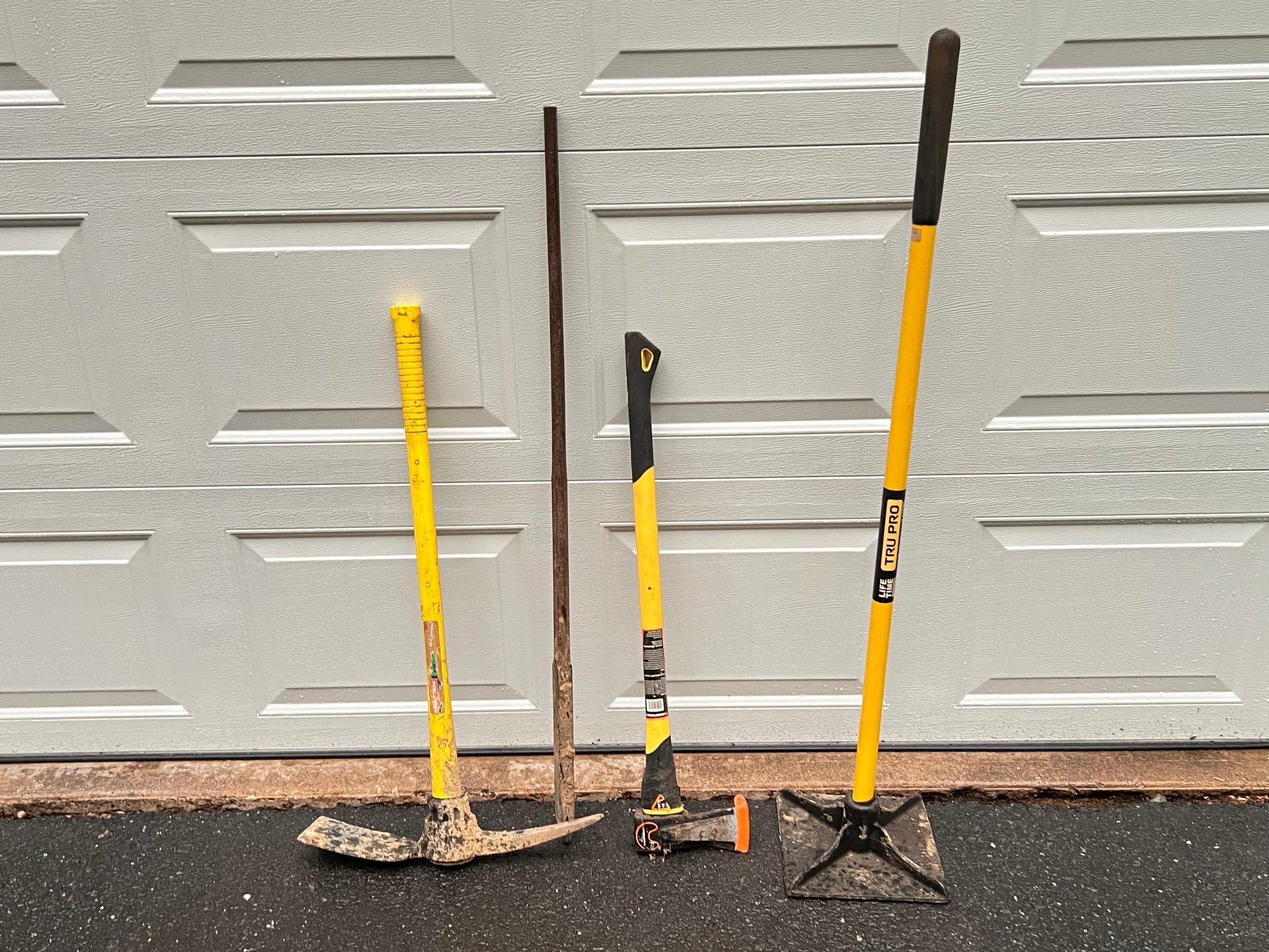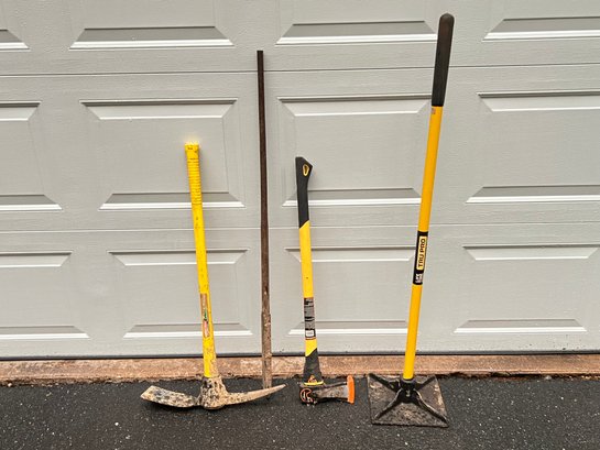 Lot Of Tamper, Pickaxe, Maul, And Pry Bar