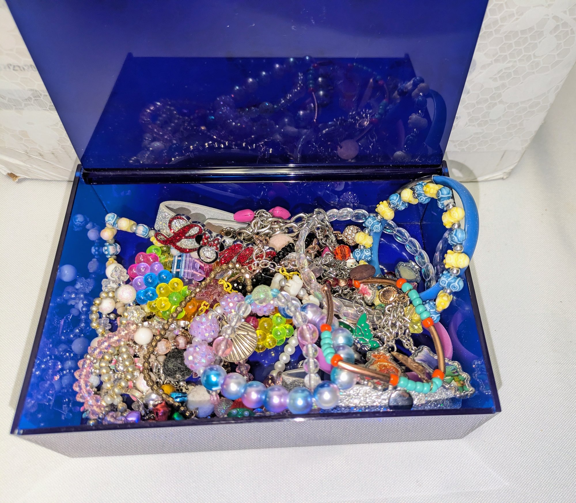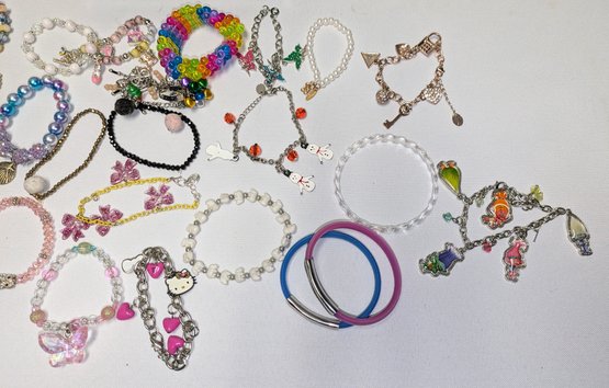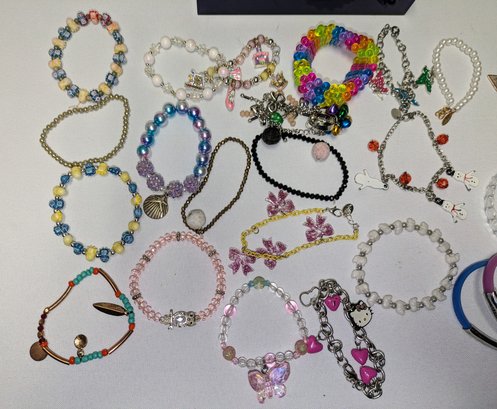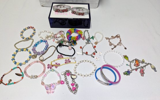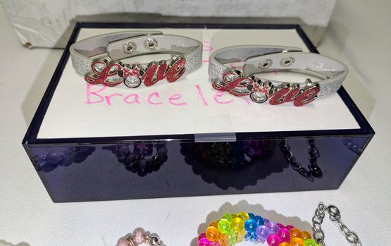 Lot of Various Girls Bracelets with a blue acrylic storage box. Great designs, all in excellent/very good condition. Please see all photos as part of the description and condition.