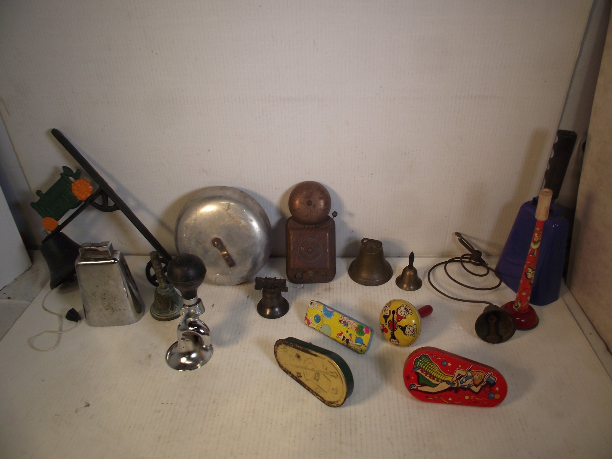 LOT OF VINTAGE BELLS AND NOISE MAKERS. SEE PHOTOS FOR CONDITION AND VARIETY.