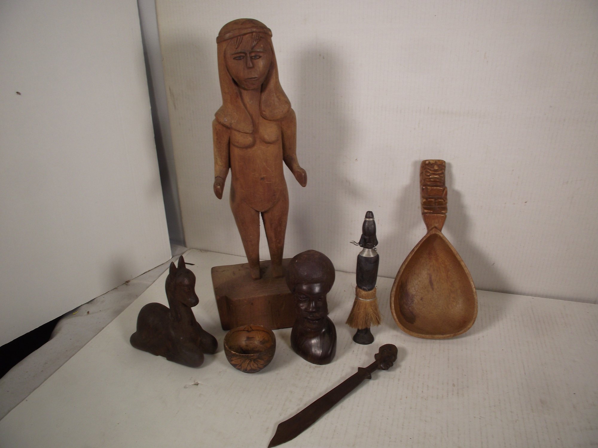 LOT OF VINTAGE CARVED WOODEN FIGURES. SEE PHOTOS FOR CONDITION.