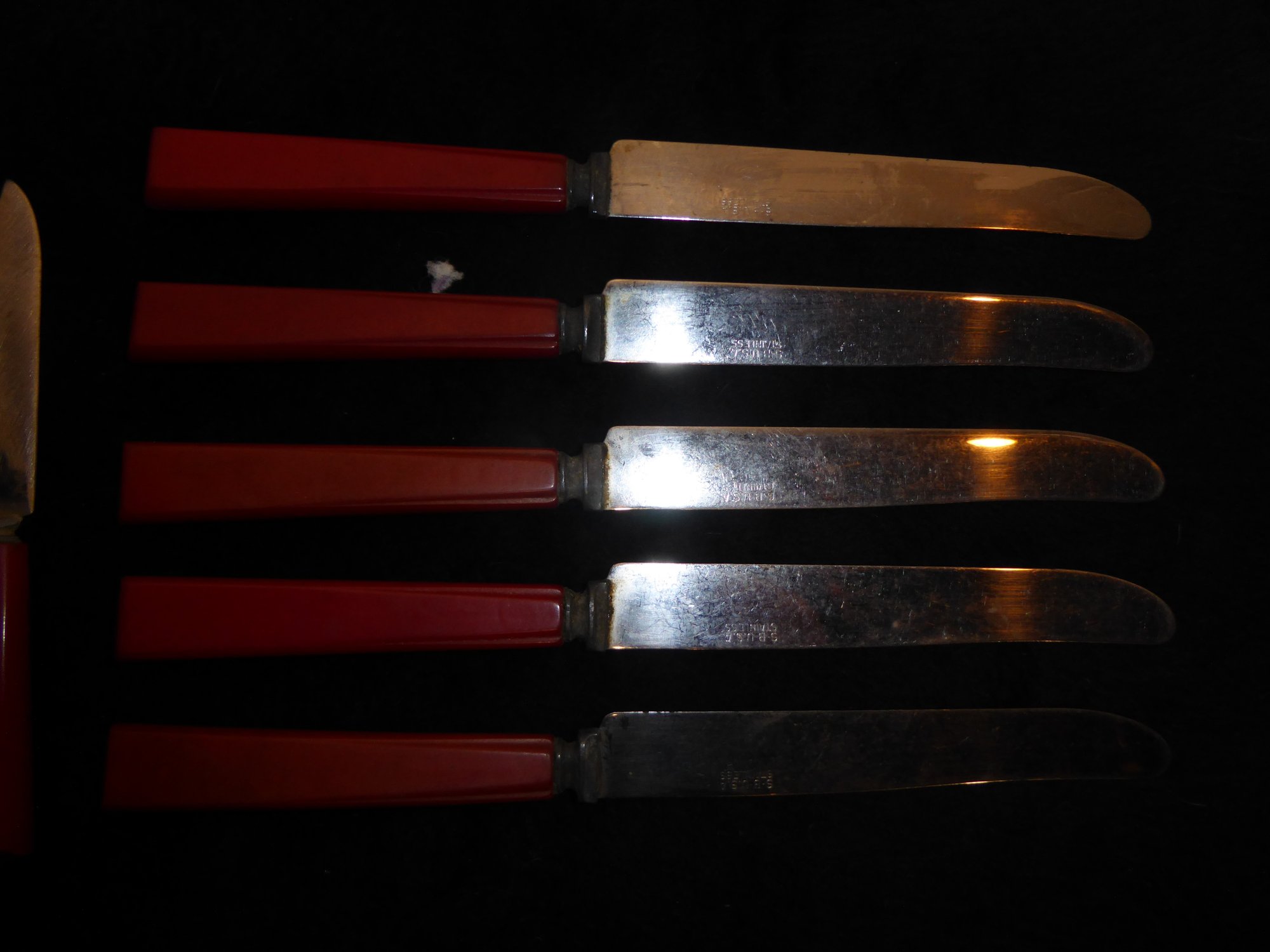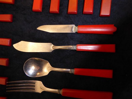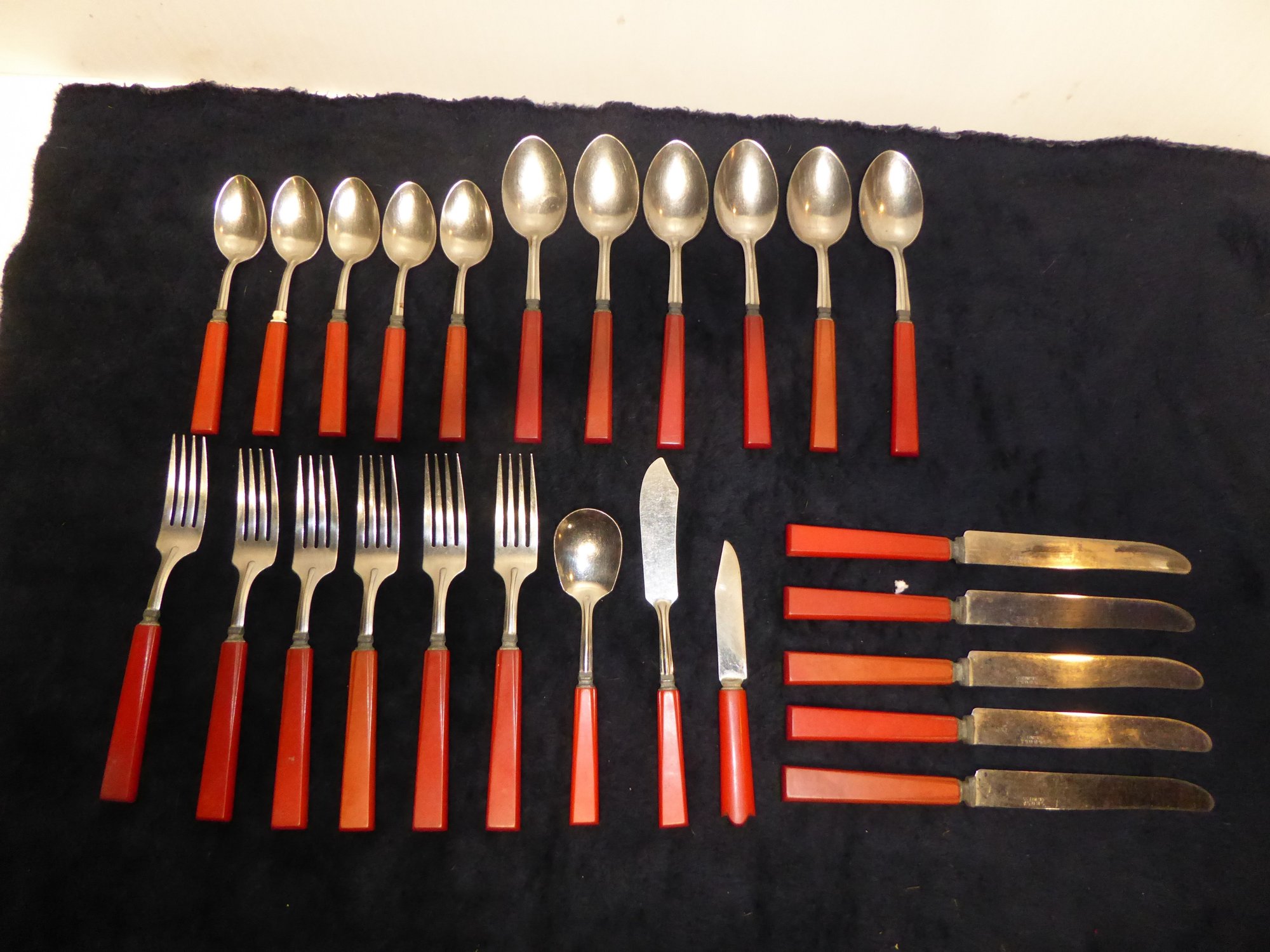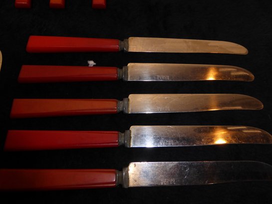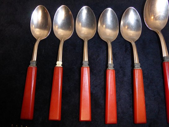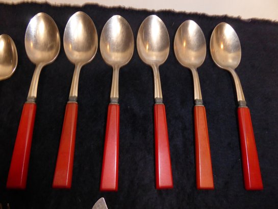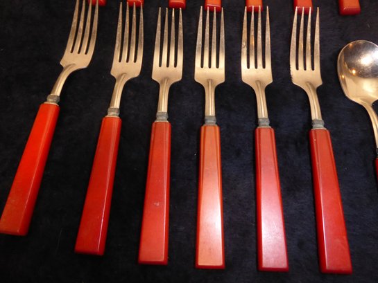 Lot Of Vintage Stainless Flatware With Red Bakelite Handles