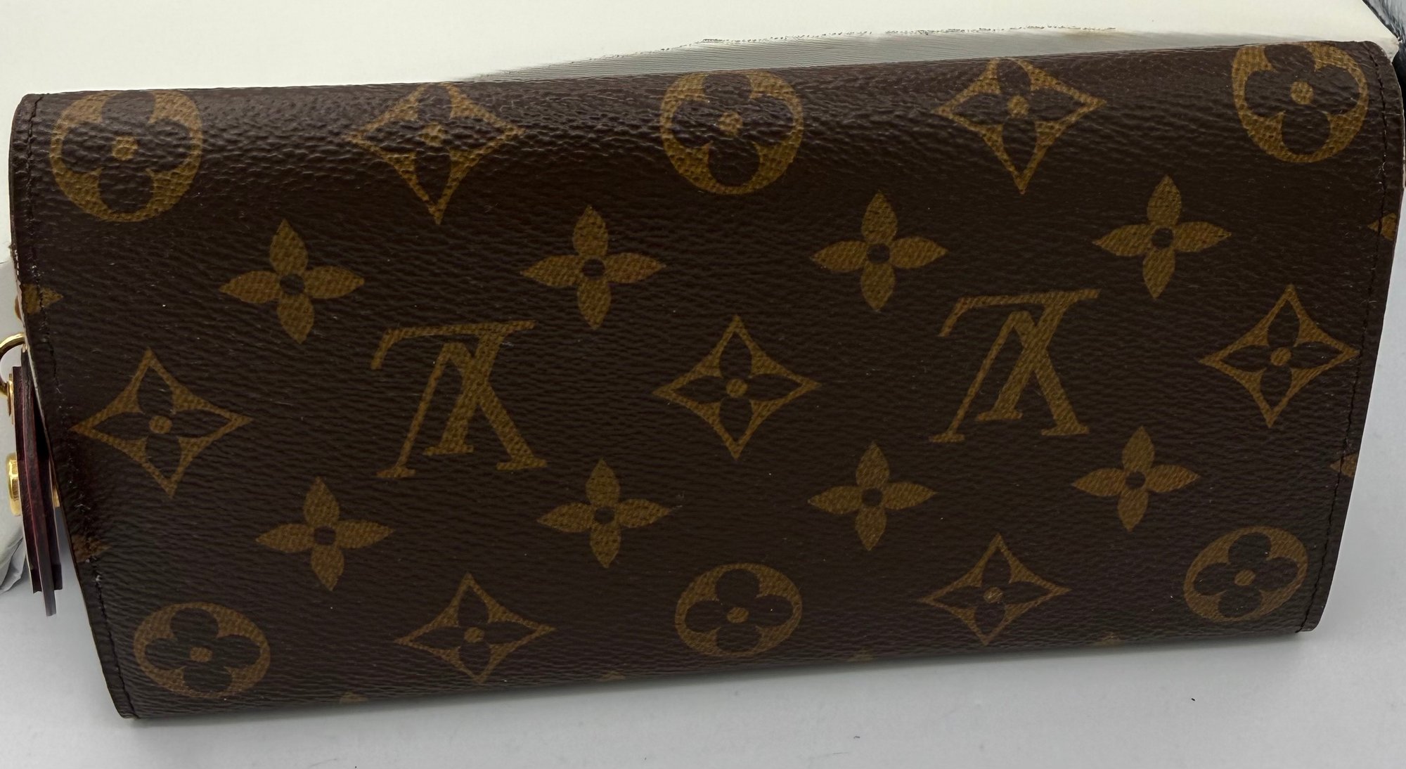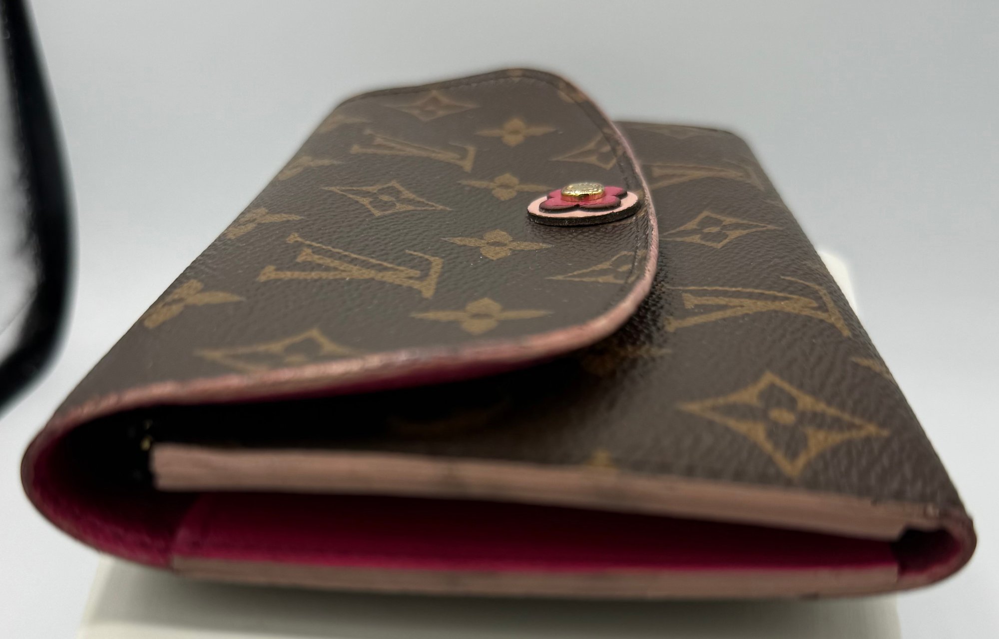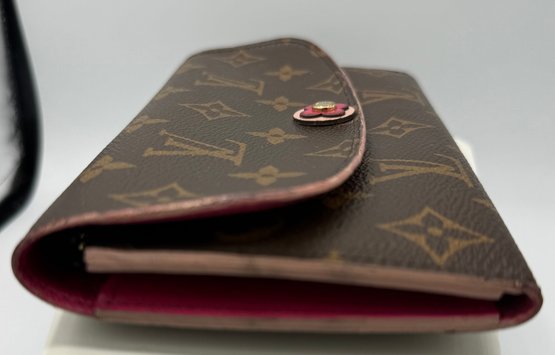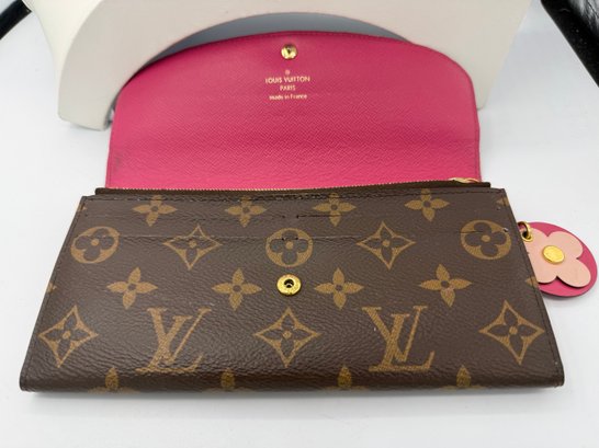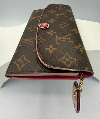 This lot features an authentic LV wallet limited edition piece with class brown monogram paired with vibrant pink accents.