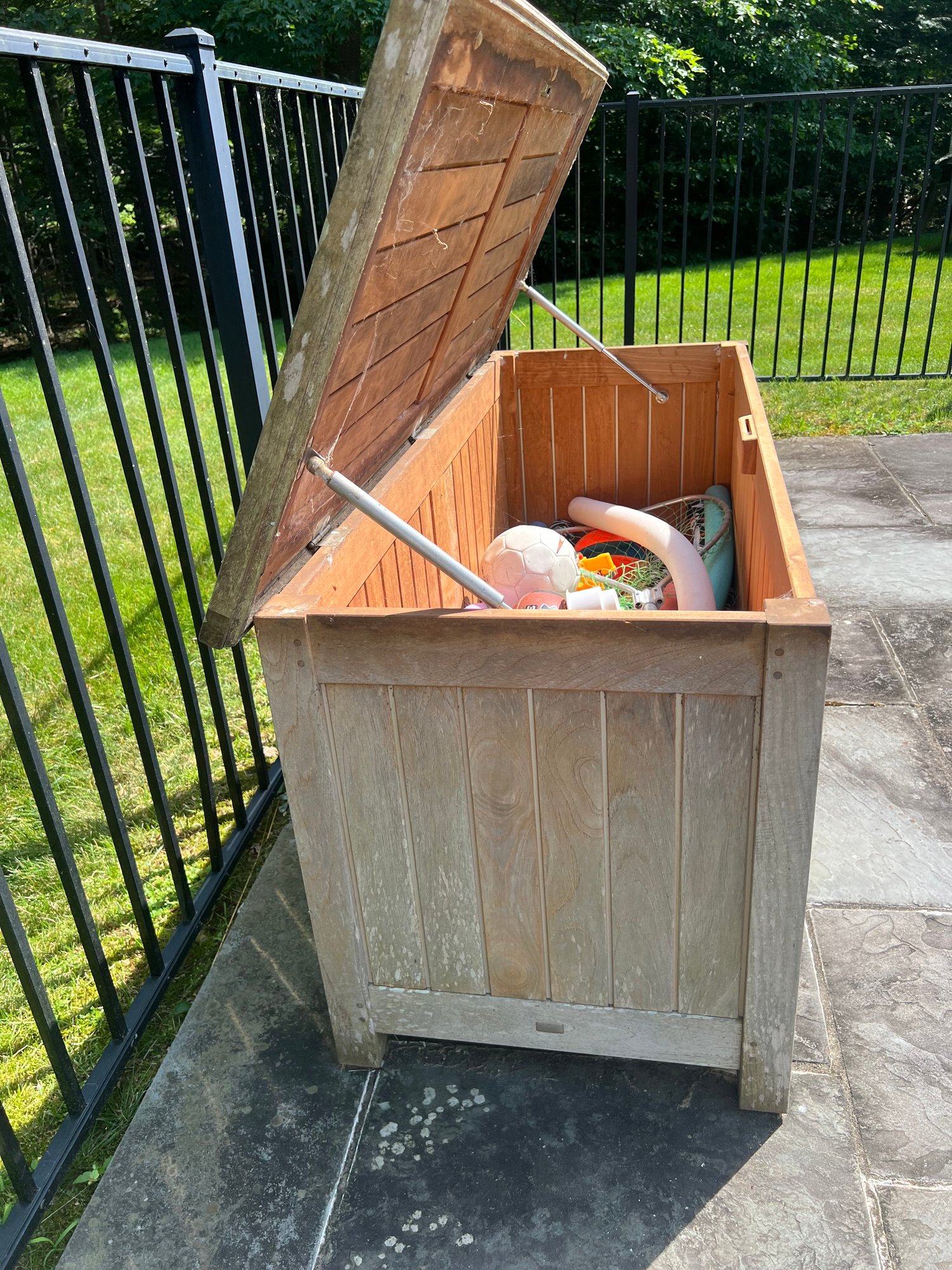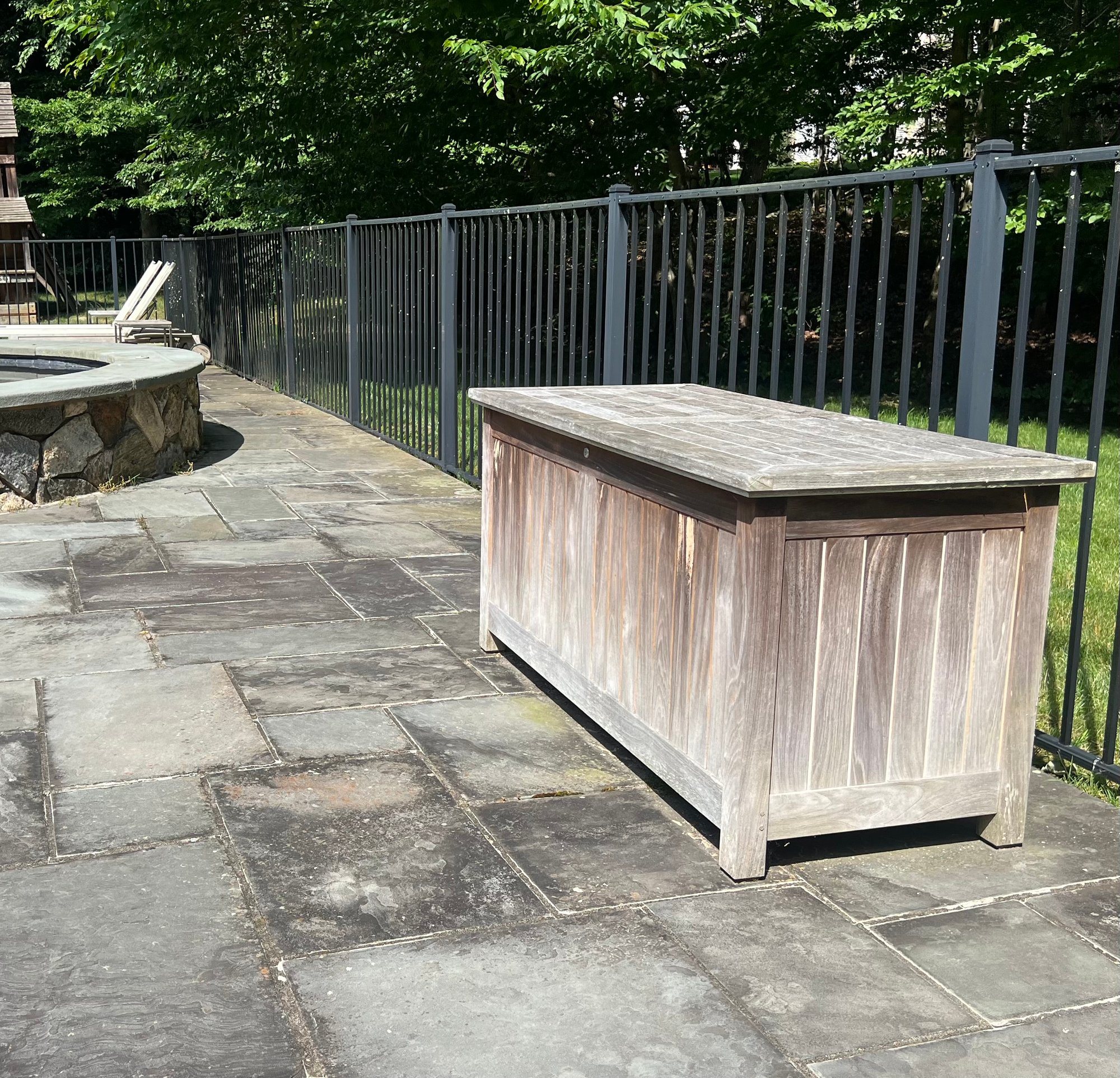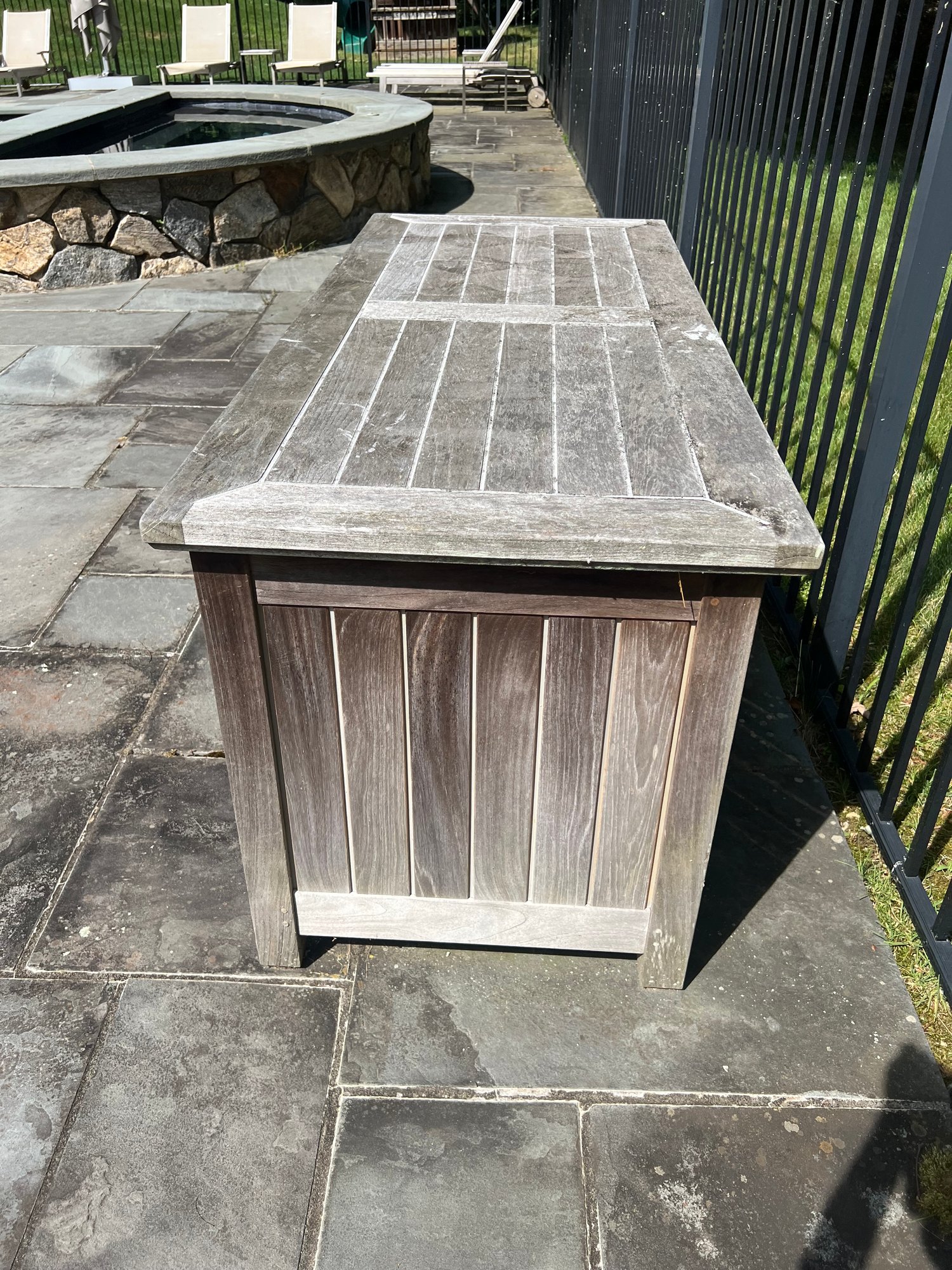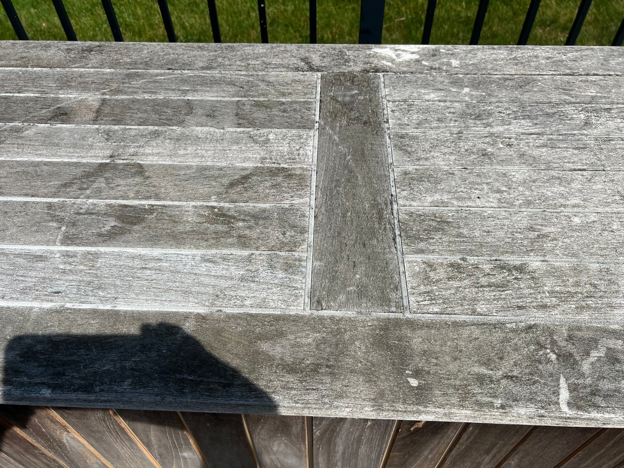Could use a power wash for a refresh look otherwise great as is! Size 59.5 L x 25.5 D x 28 H