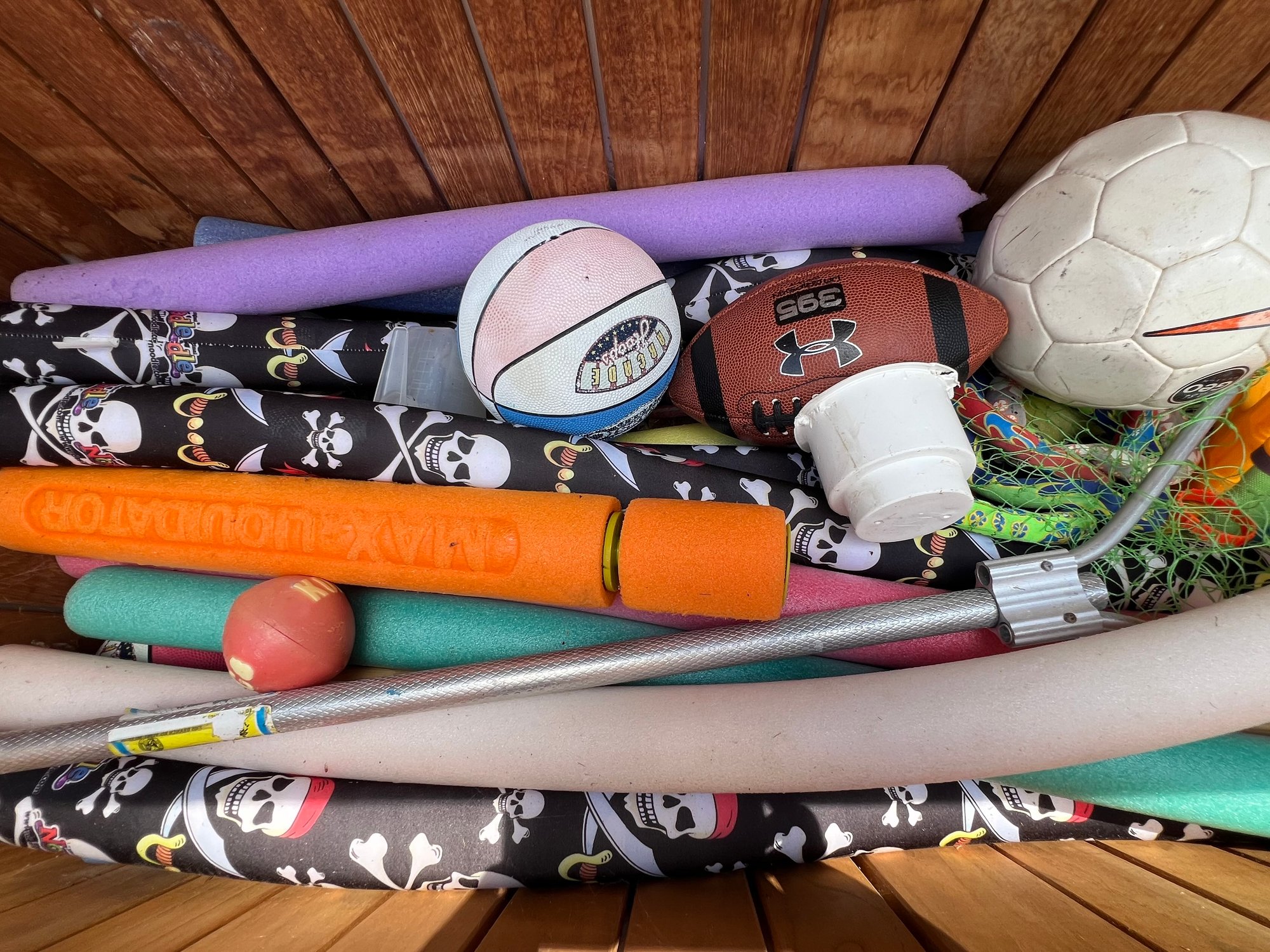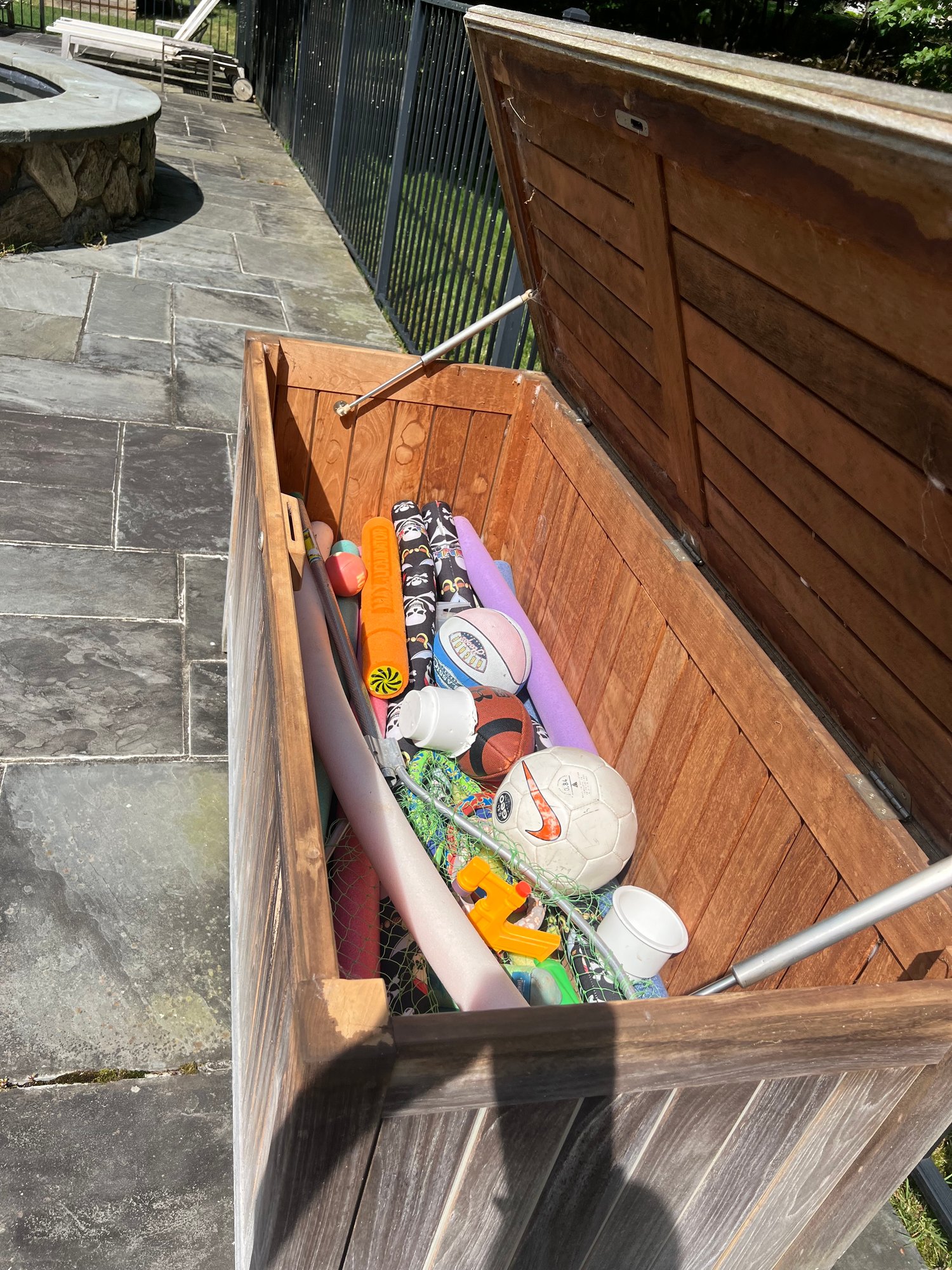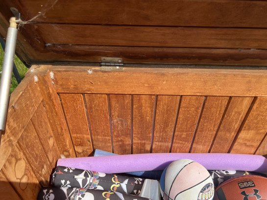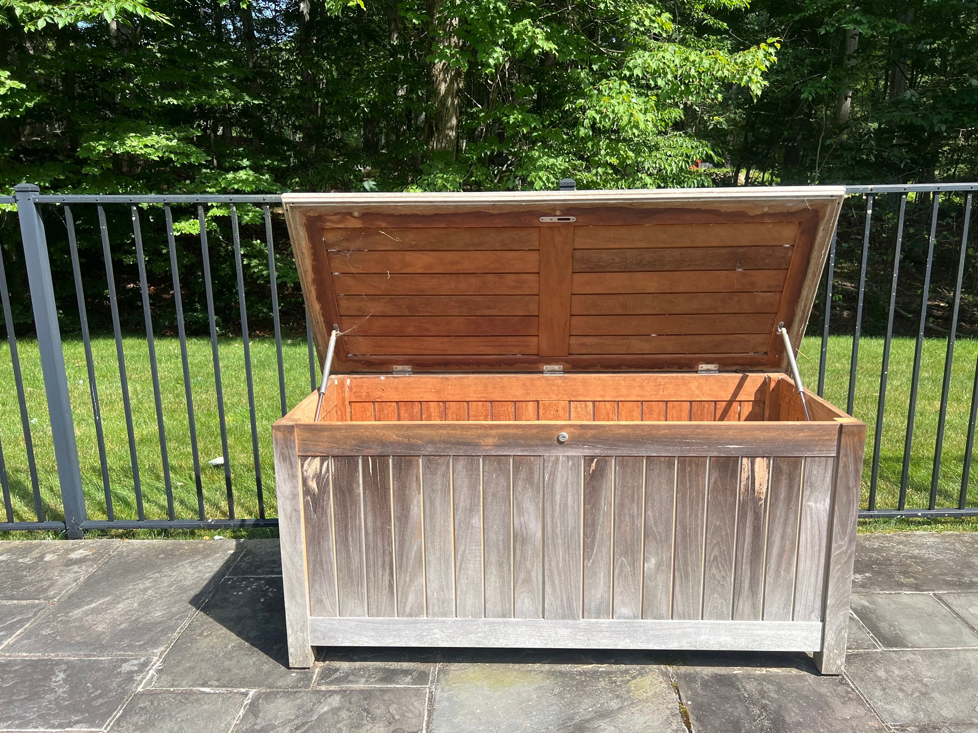 Could use a power wash for a refresh look otherwise great as is! Size 59.5 L x 25.5 D x 28 H